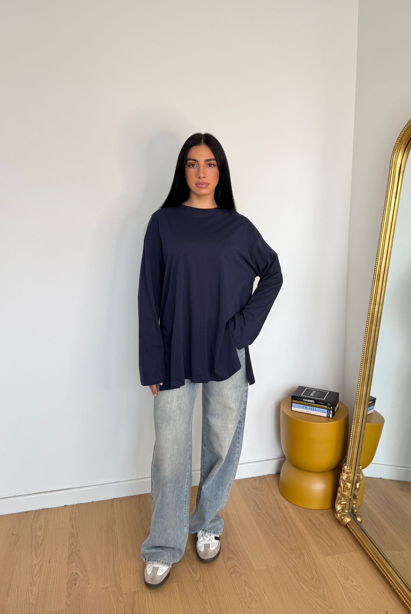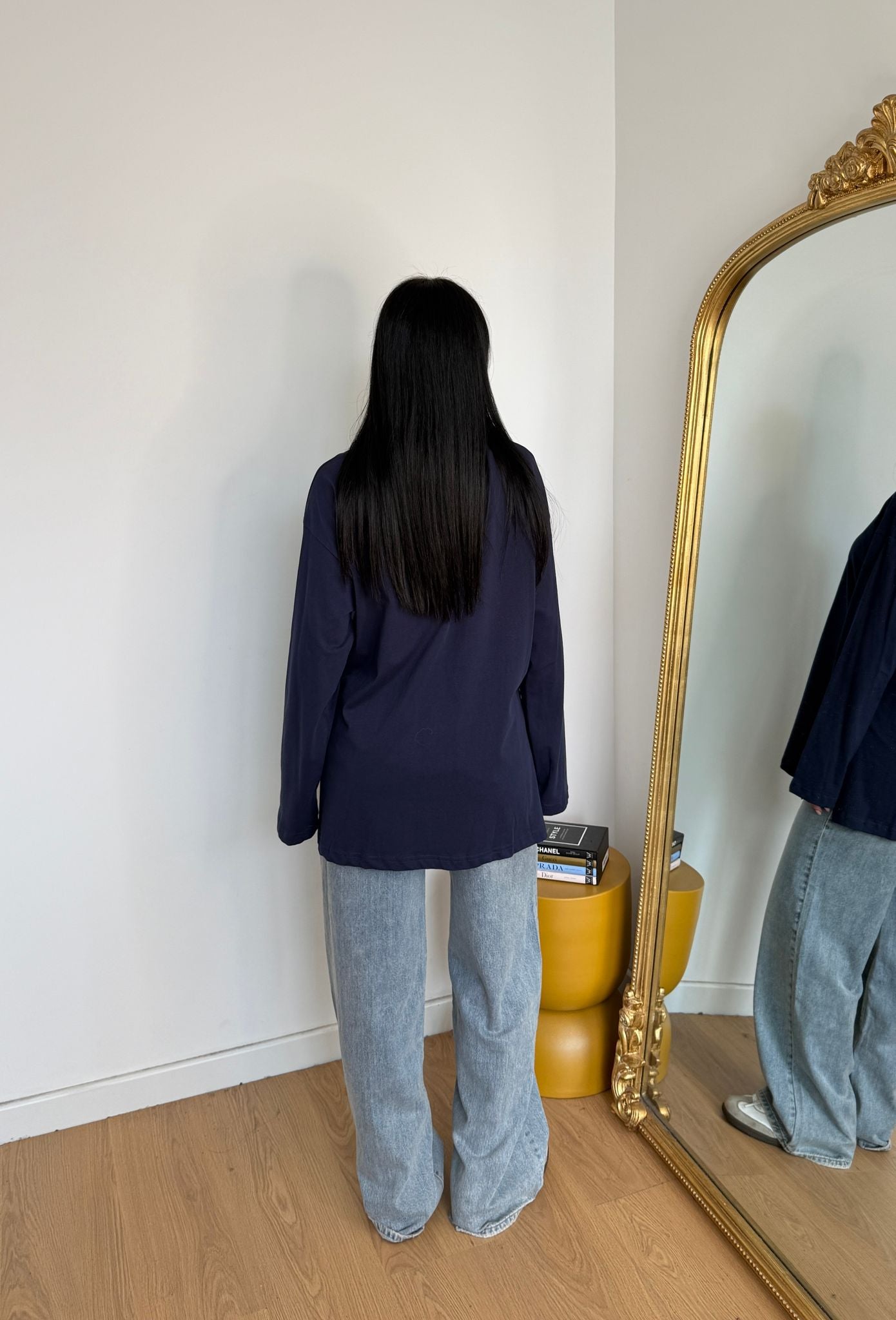Shirt da donna vestibilità oversize ma veste regolarmente la propria taglia e la modella indossa taglia S/M