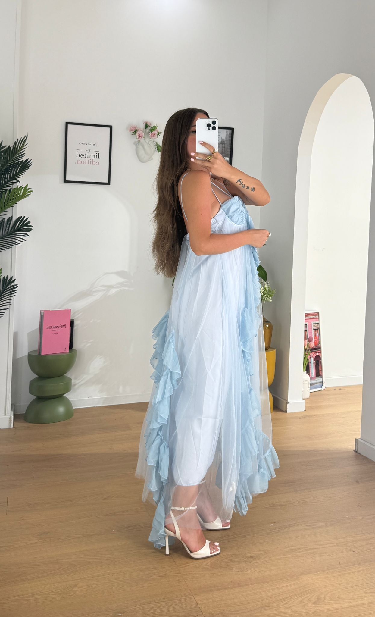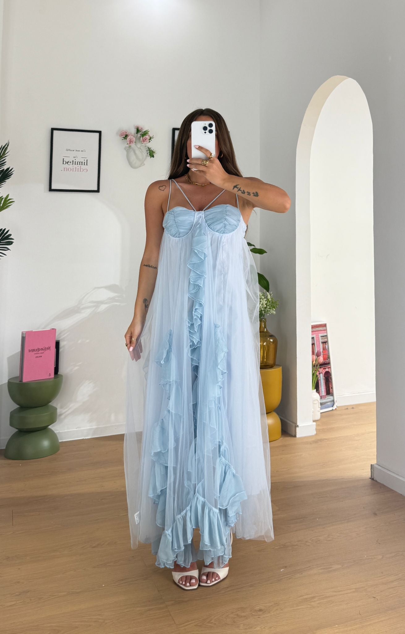 Abito da donna in tuller foderato internamente e con coppe leggermente imbottite, top quality e veste regolarmente la propria taglia e Giusy indossa taglia S
