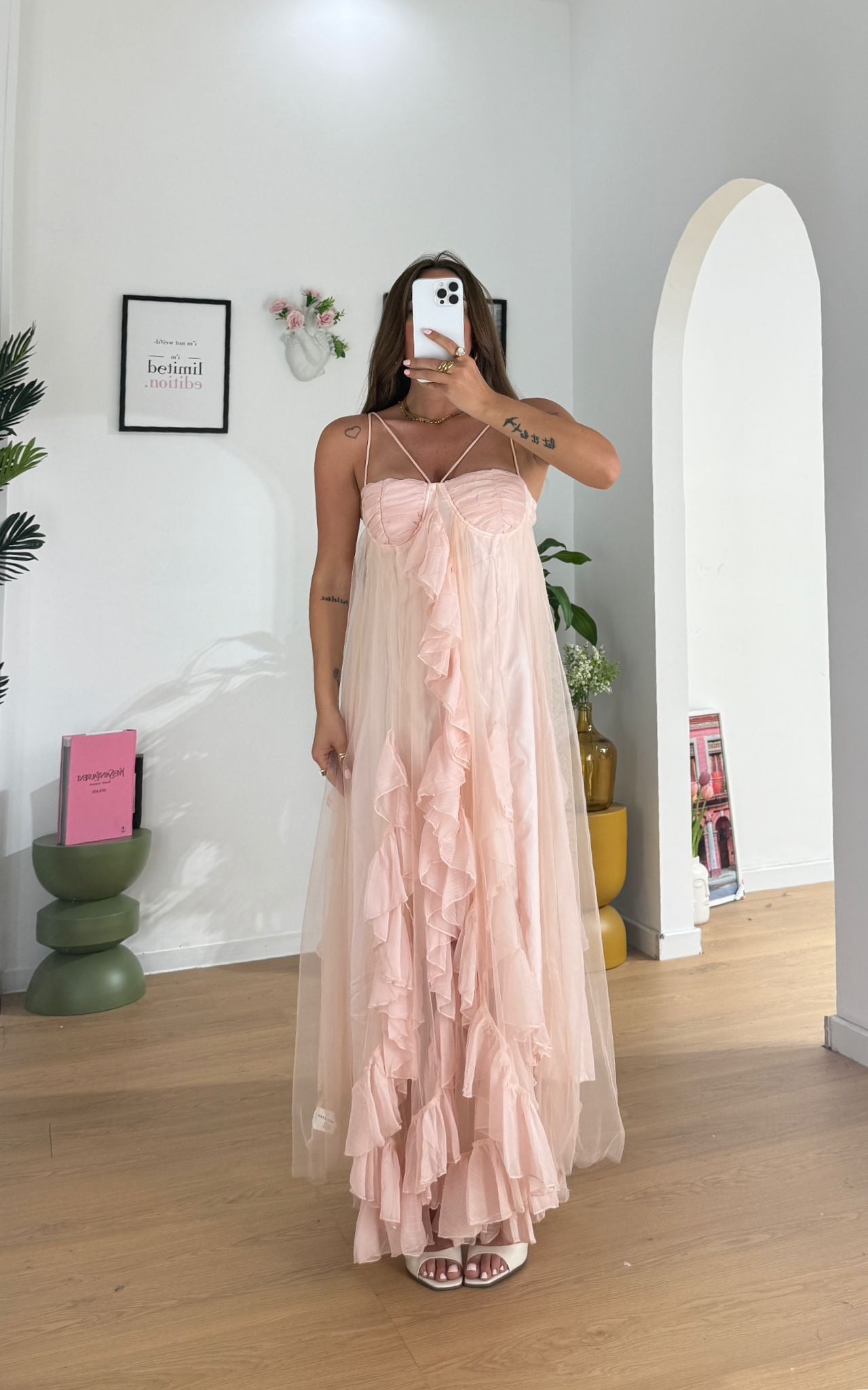 Abito da donna in tuller foderato internamente e con coppe leggermente imbottite, top quality e veste regolarmente la propria taglia e Giusy indossa taglia S