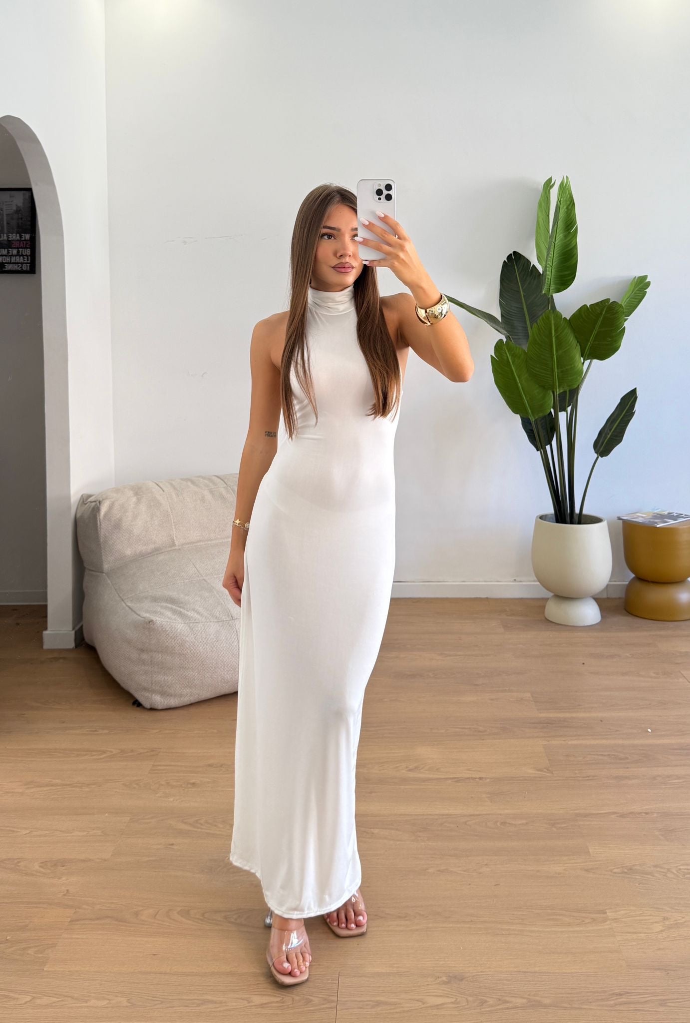Abito da donna in cotone leggero con colletto e spacco laterale, tessuto elasticizzato e vestirà bene fino ad una 44 piena
