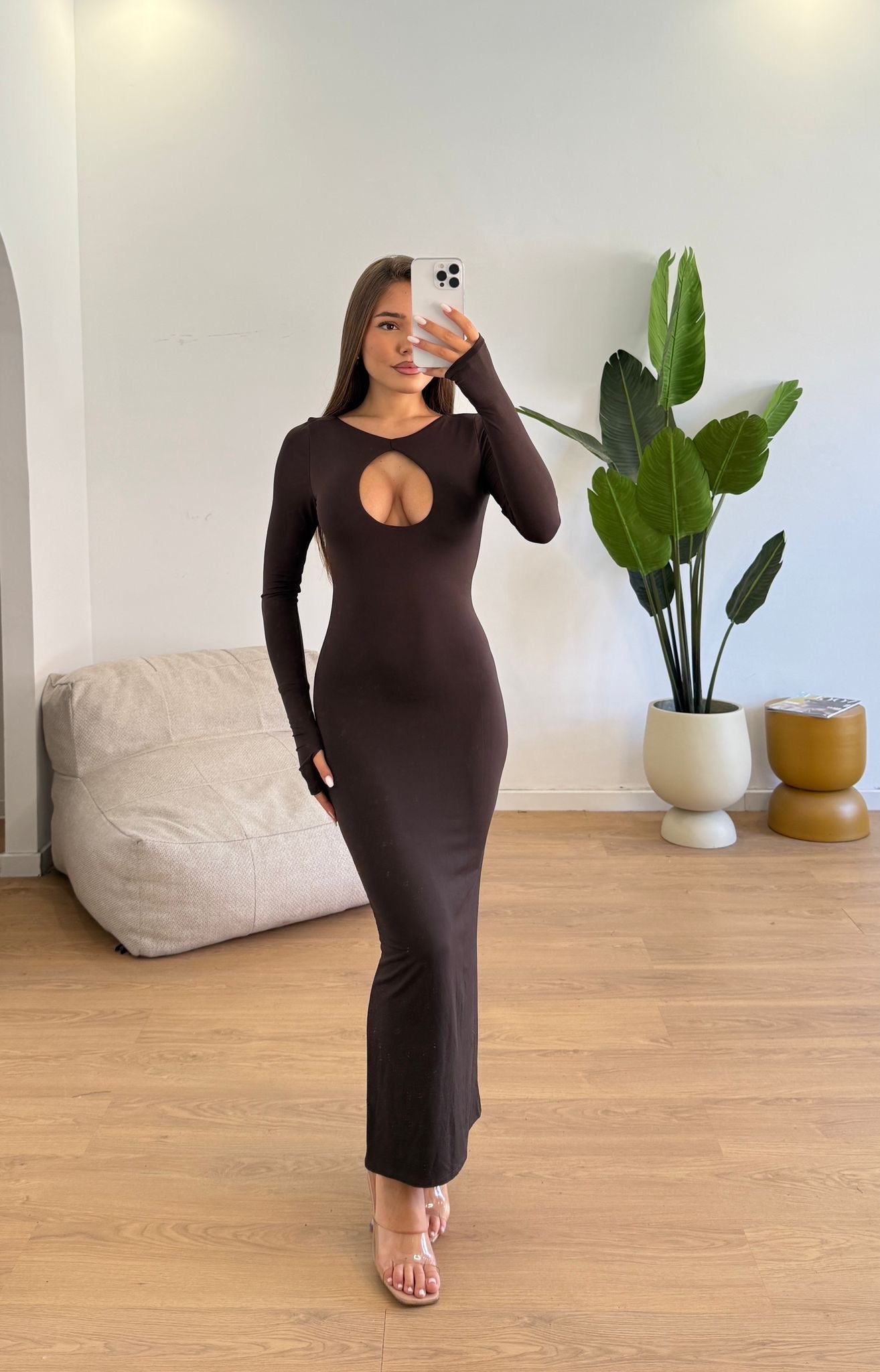 Abito da donna in lycra tessuto elasticizzato con maniche a guanto e scollo sul davanti. vestirà bene fino ad una 44 piena