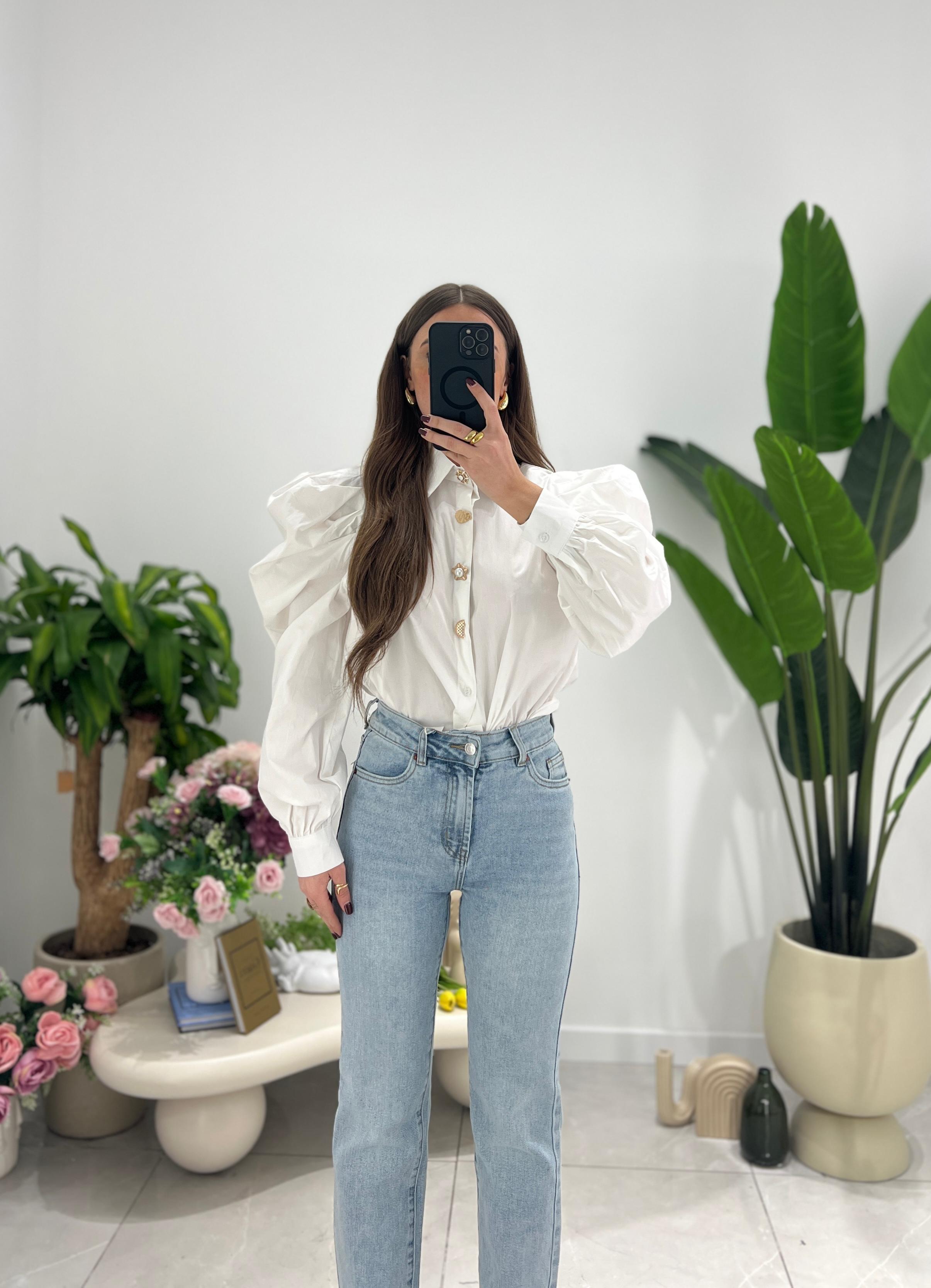 Camicia con spalla ampia e manica regolare. Veste regolarmente la propria taglia. Giusy indossa la taglia S/M.