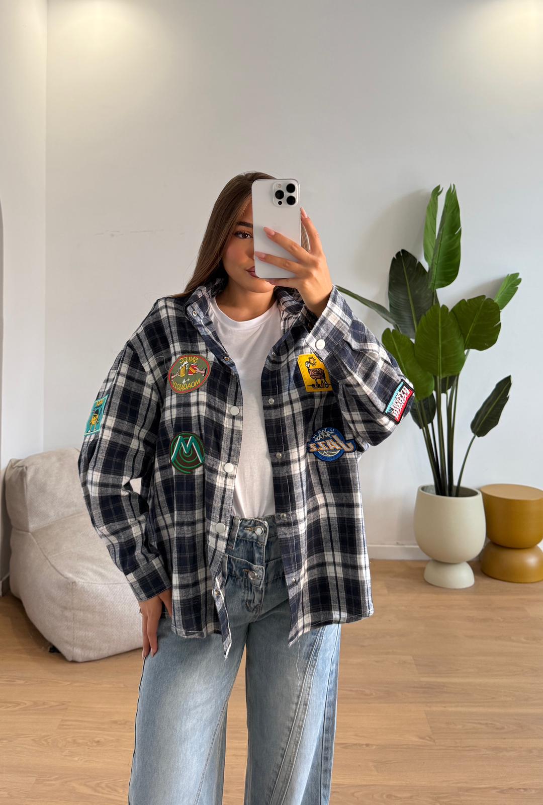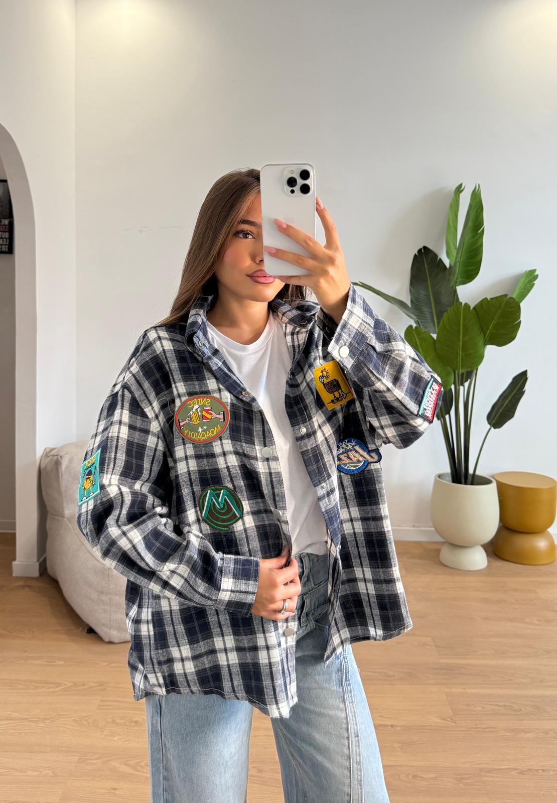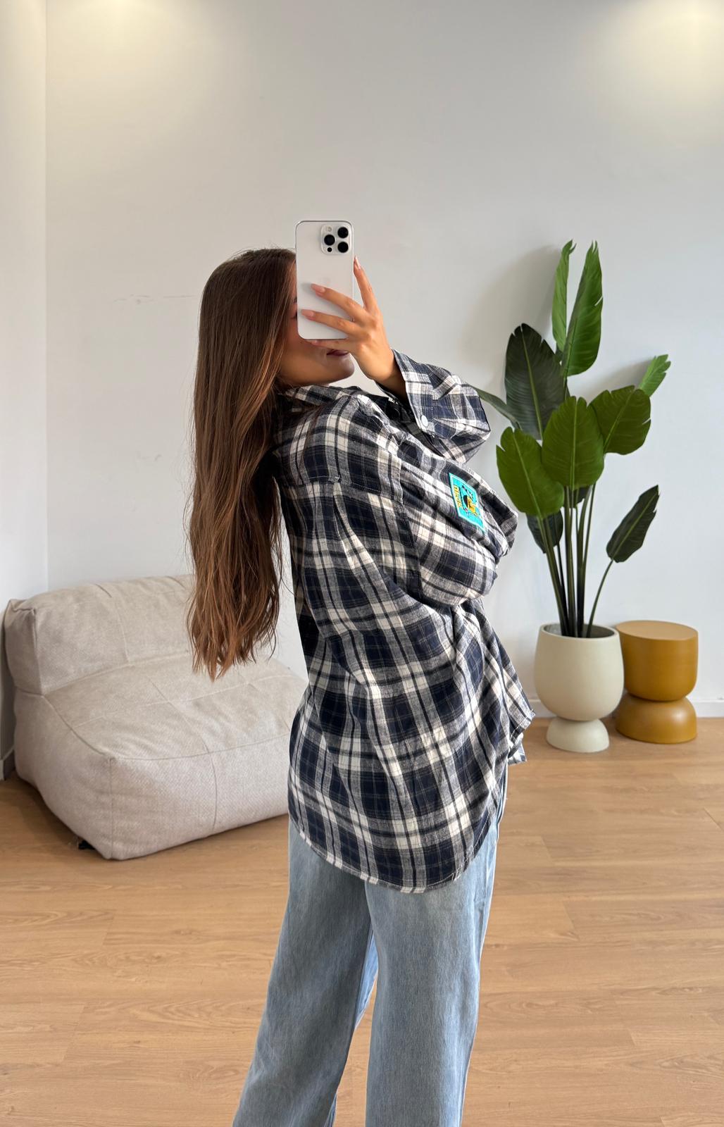 Camicia da donna modello over e veste regolarmente la propria taglia e la modella indossa taglia S/M