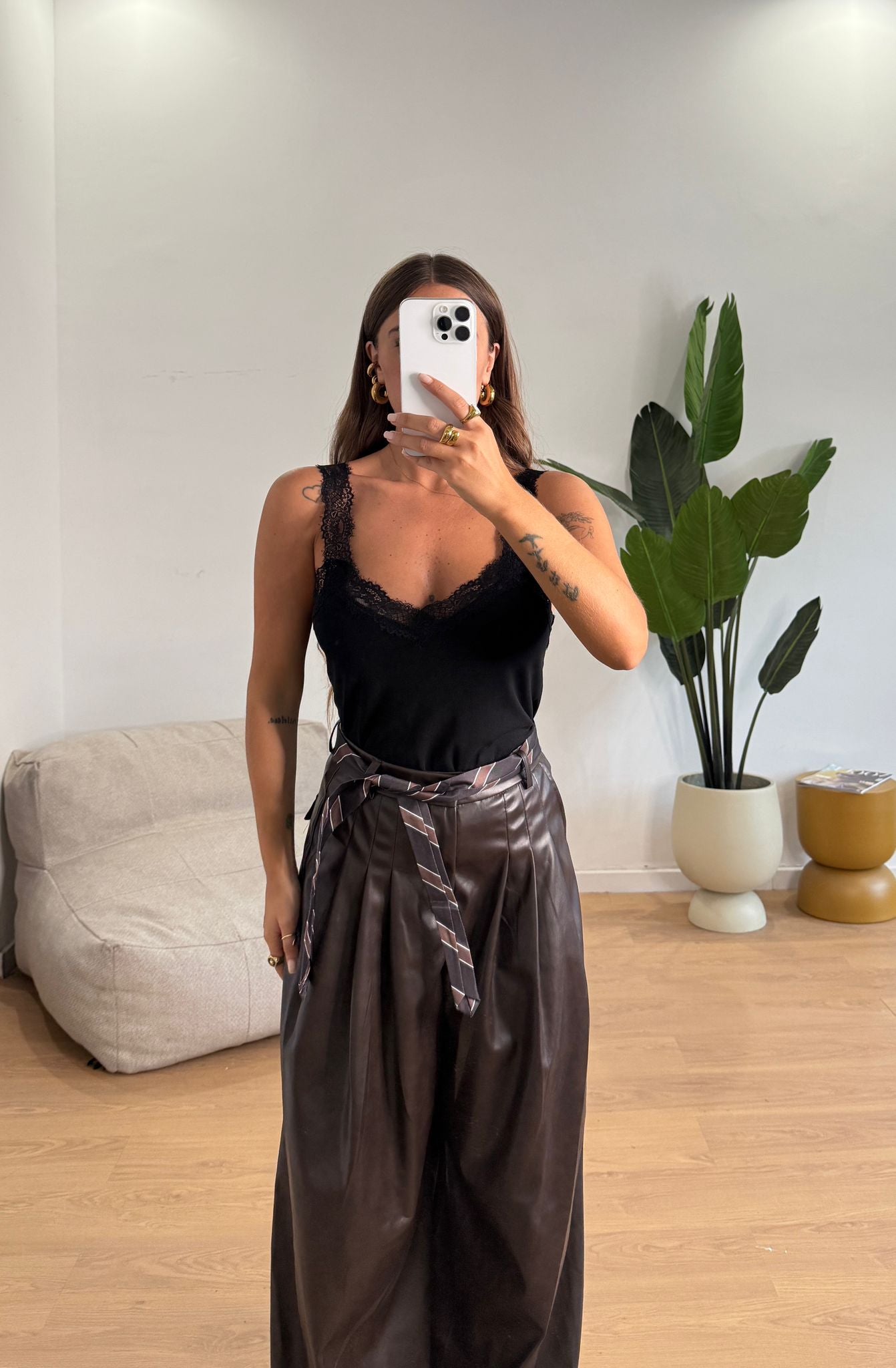 Canotta da donna in lycra con definizione in ricamo, tessuto elasticizzato ma veste regolarmente la propria taglia e la modella indossa taglia S/M
