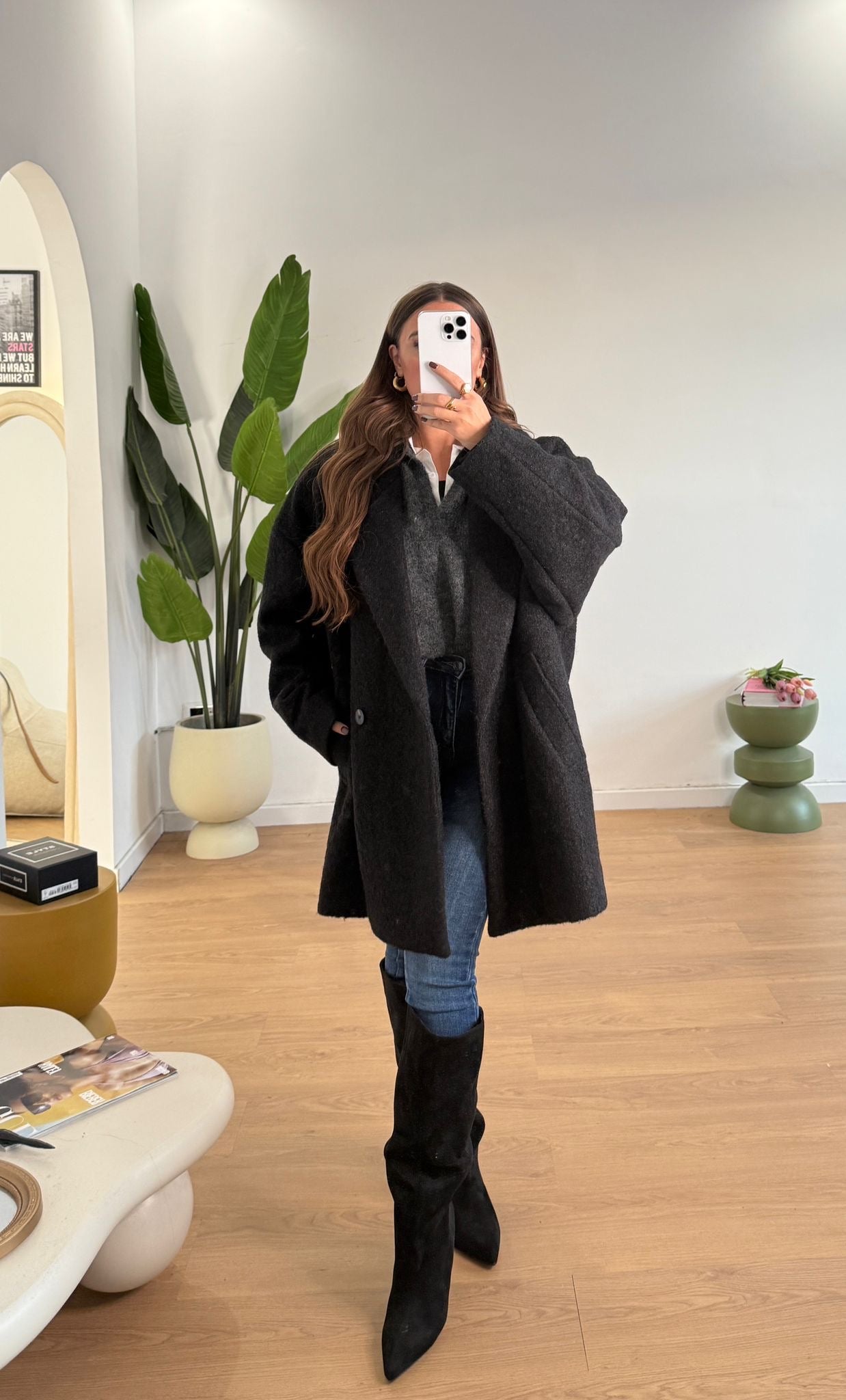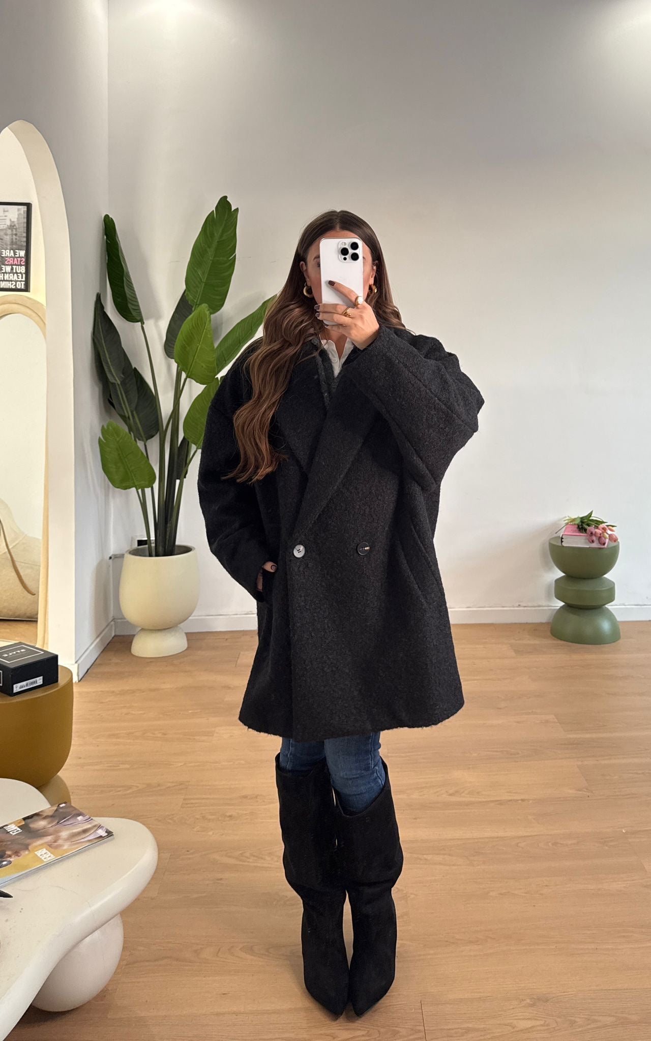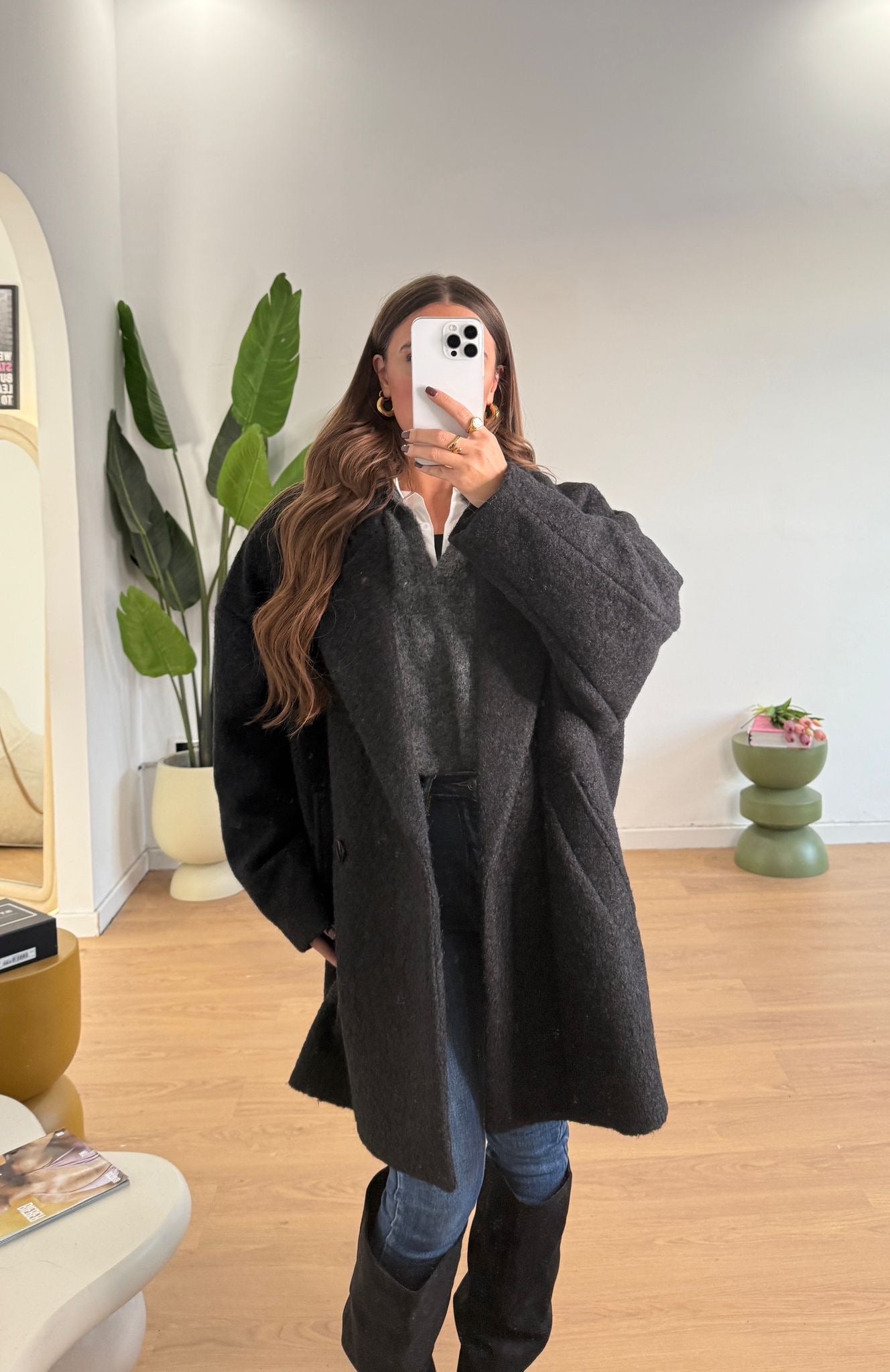 Cappotto da donna top quality foderato internamente, modello oversize, tessuto in lana rasata e vestirà bene fino ad una M/L piena