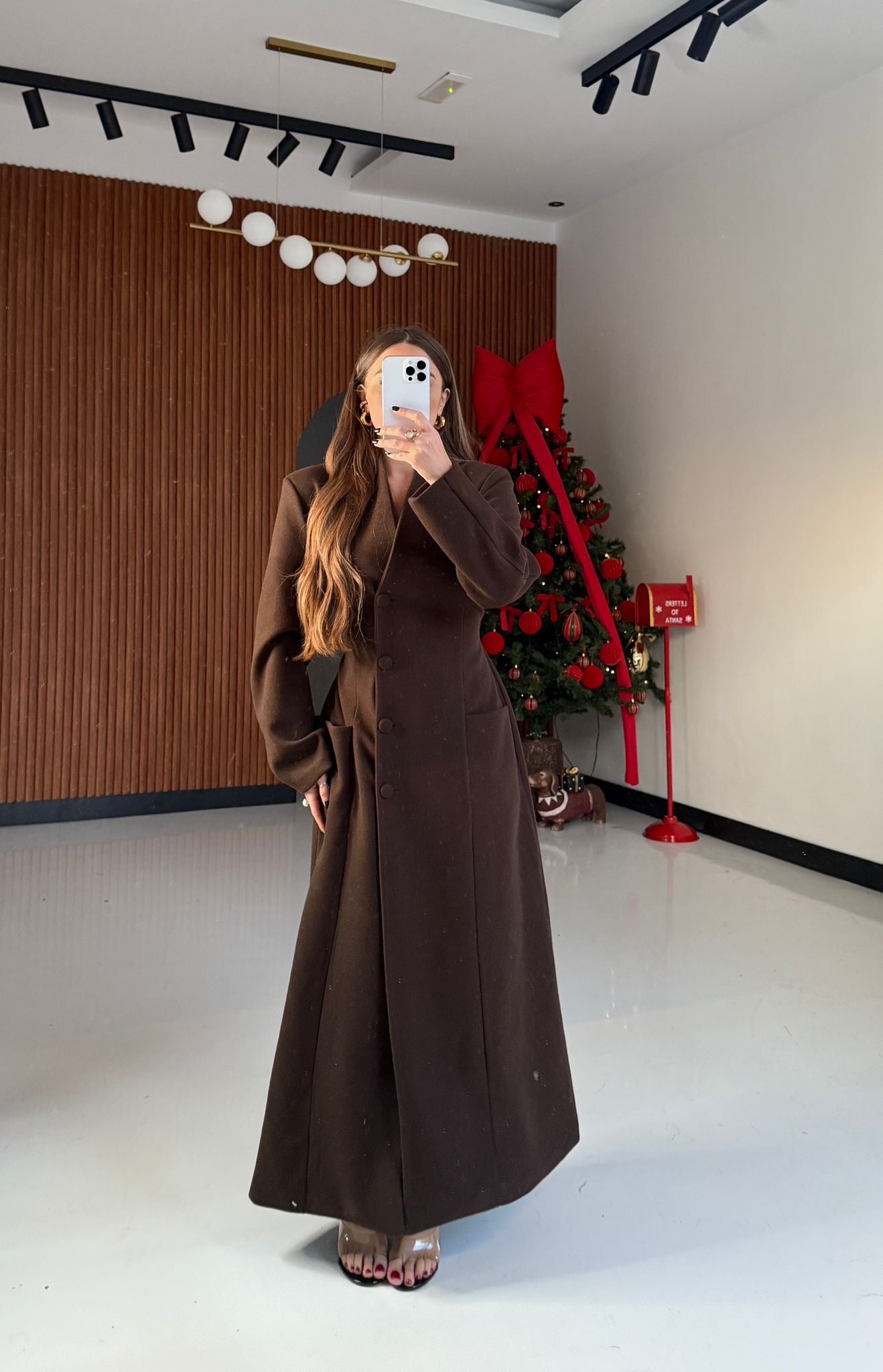 Cappotto da donna foderato internamente, con chiusura a bottoni sul davanti e cintura cucita, non rimovibile. Taglia unica, veste bene fino ad una M/L.