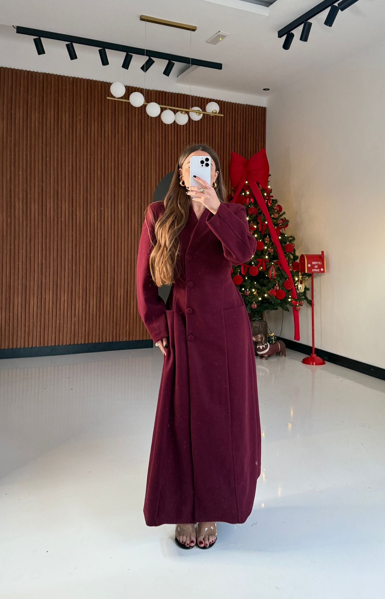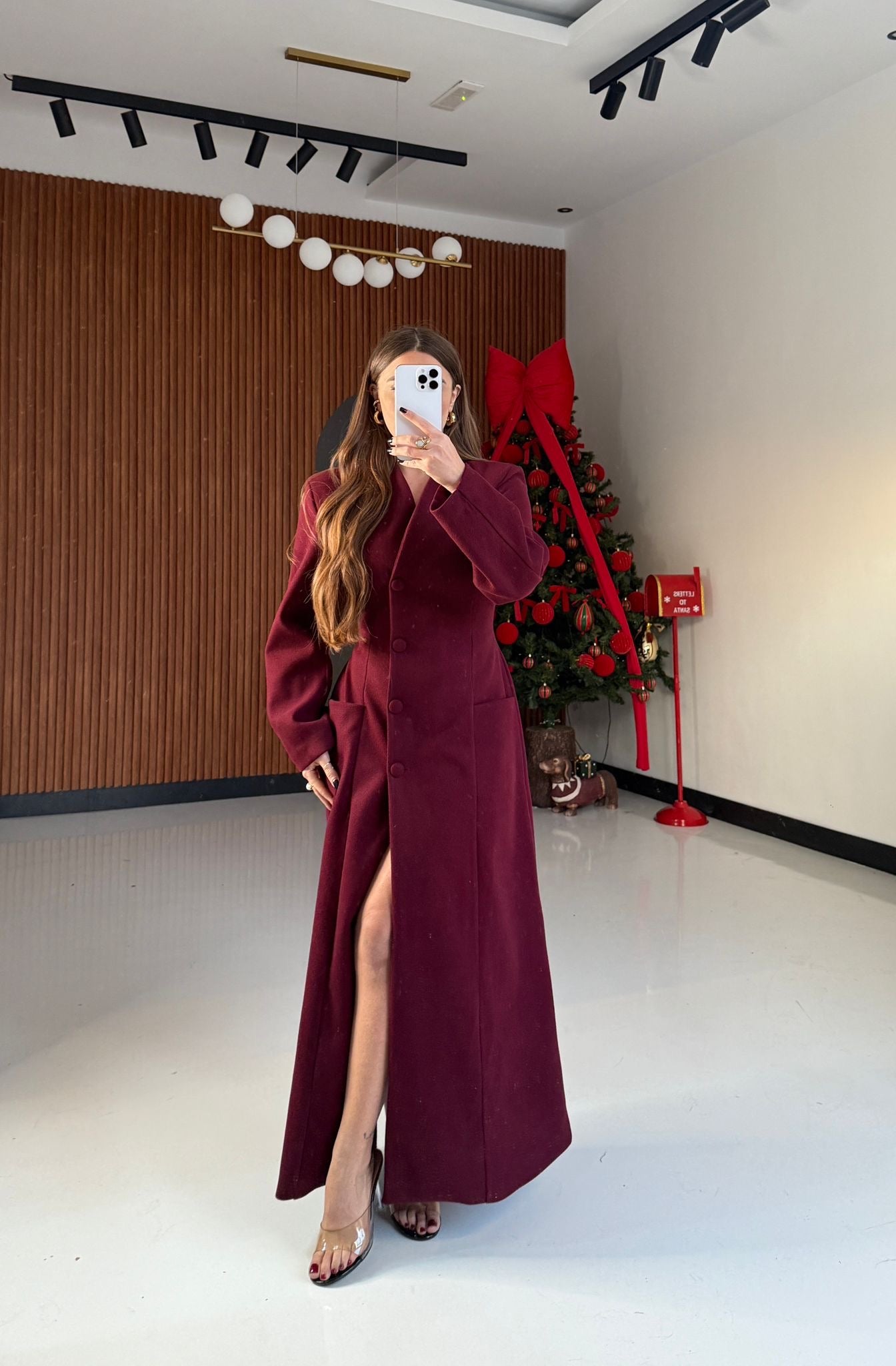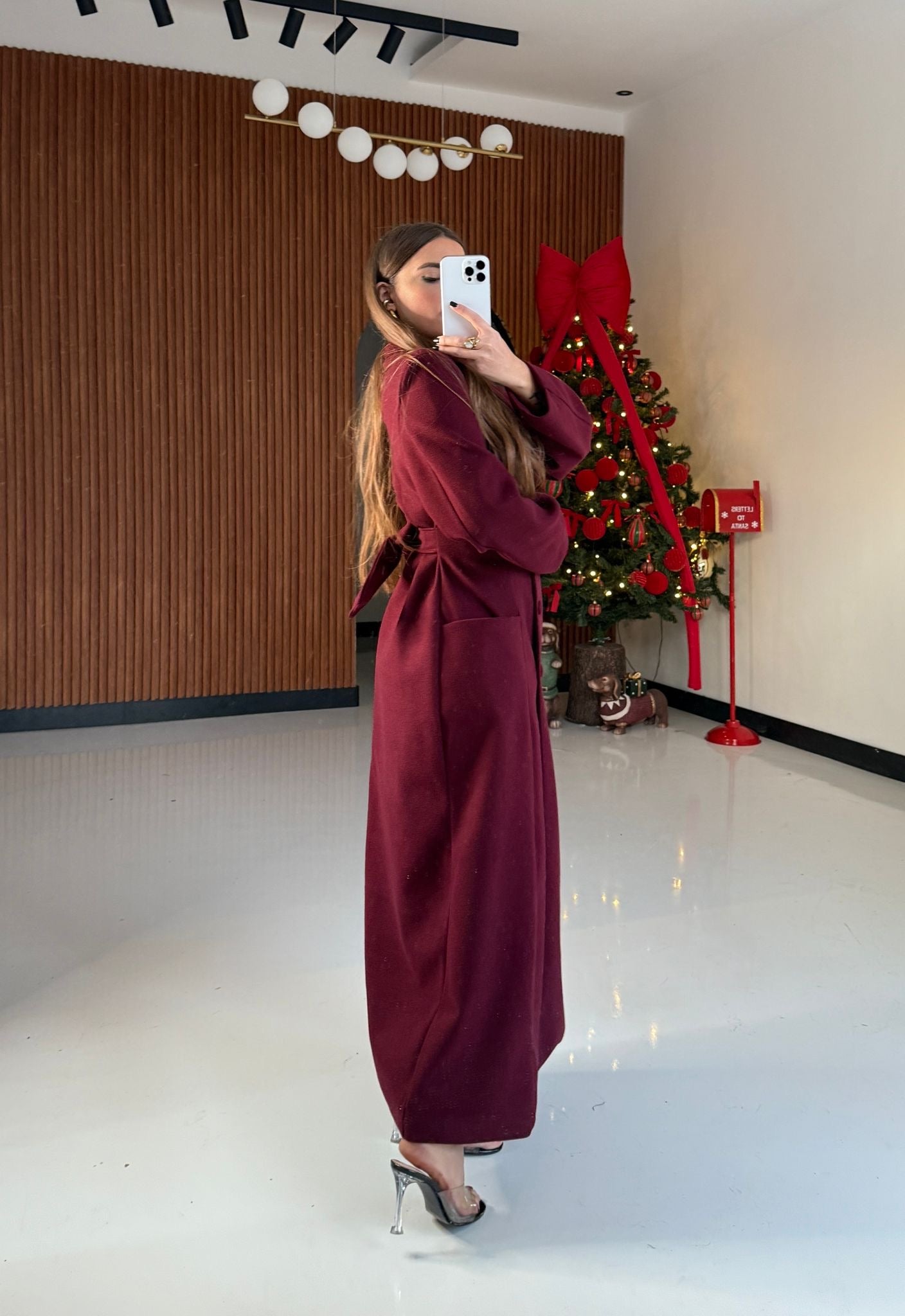 Cappotto da donna foderato internamente, con chiusura a bottoni sul davanti e cintura cucita, non rimovibile. Taglia unica, veste bene fino ad una M/L.