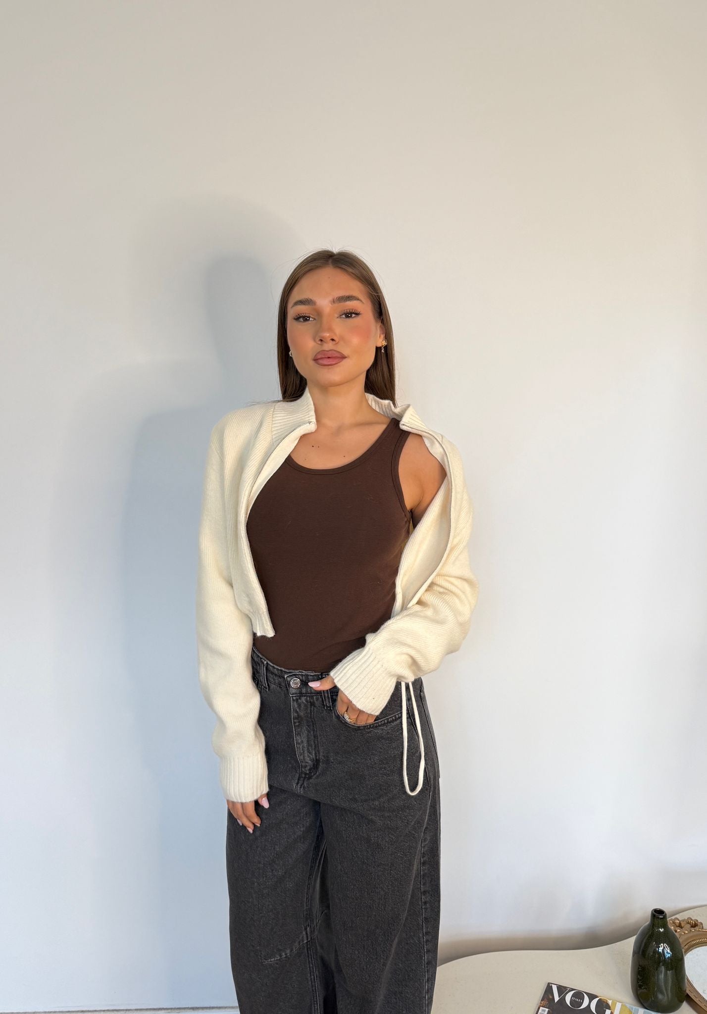 Coord.set da donna in lana rasata con chiusura zip sul davanti con canotta compresa e vestirà bene fino ad una M/L
