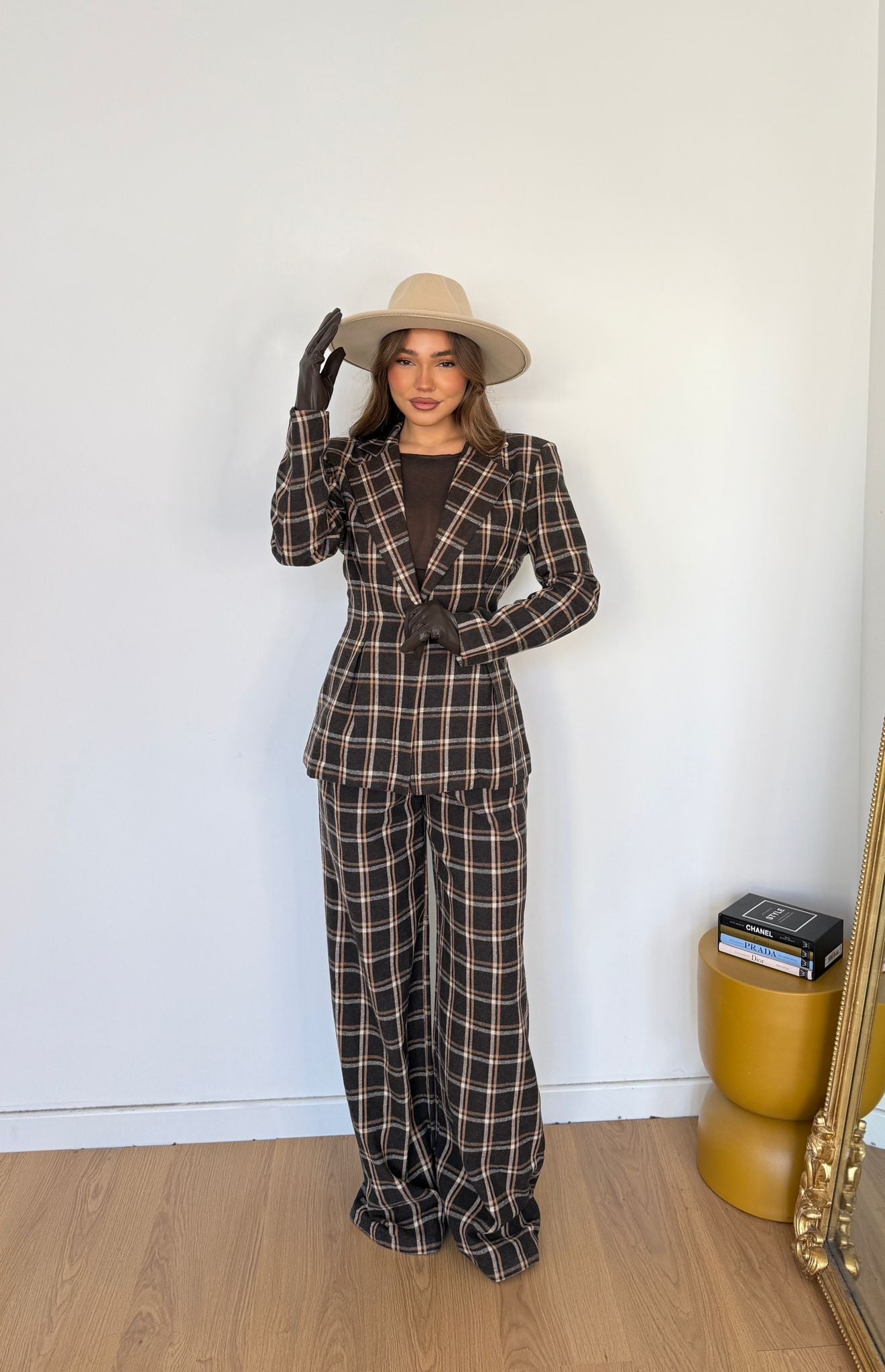 Coordinato da donna composto da giacca con spalline imbottite e pantalone con elastico in vita e vestirà bene fino ad una M/L