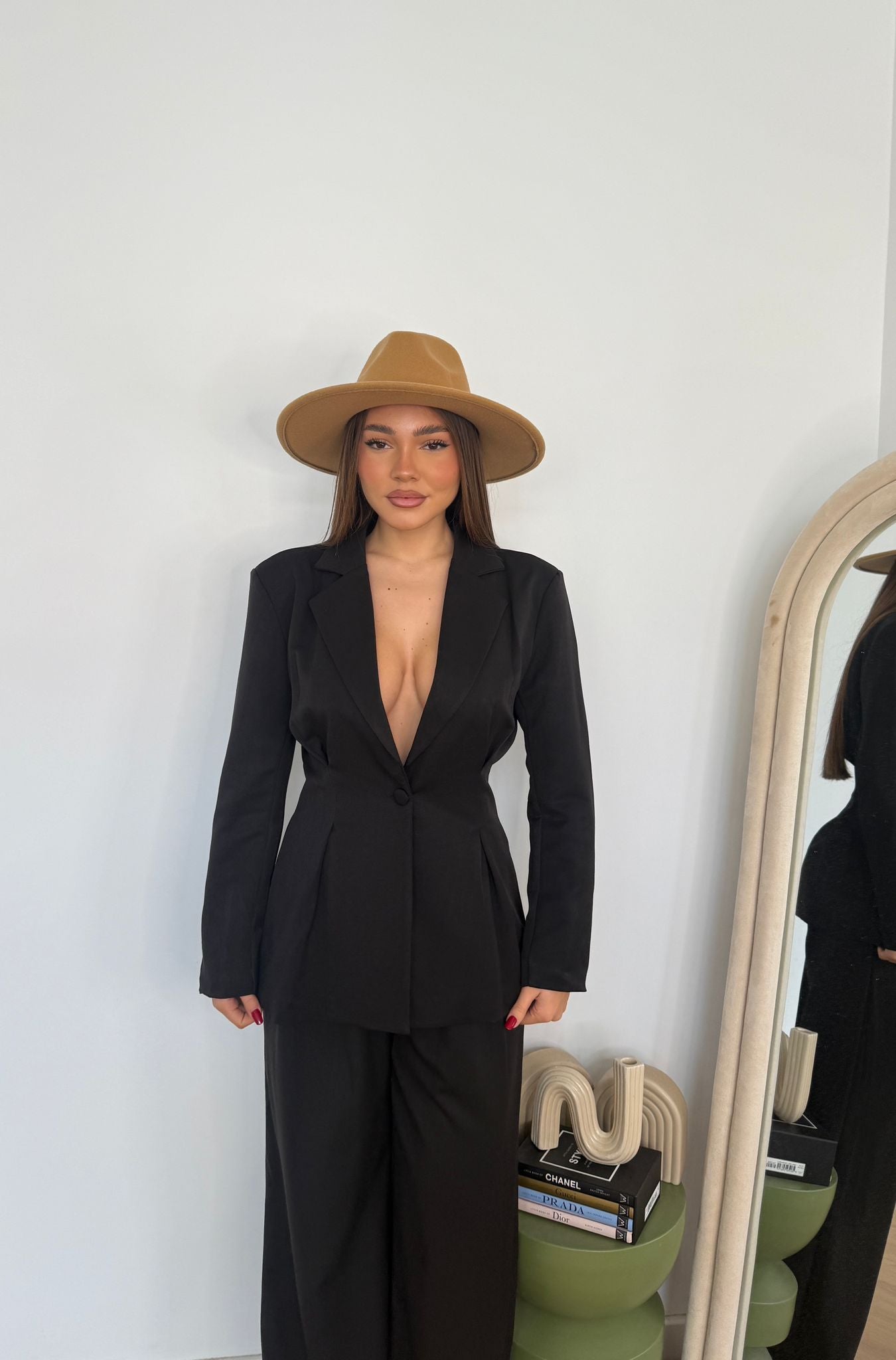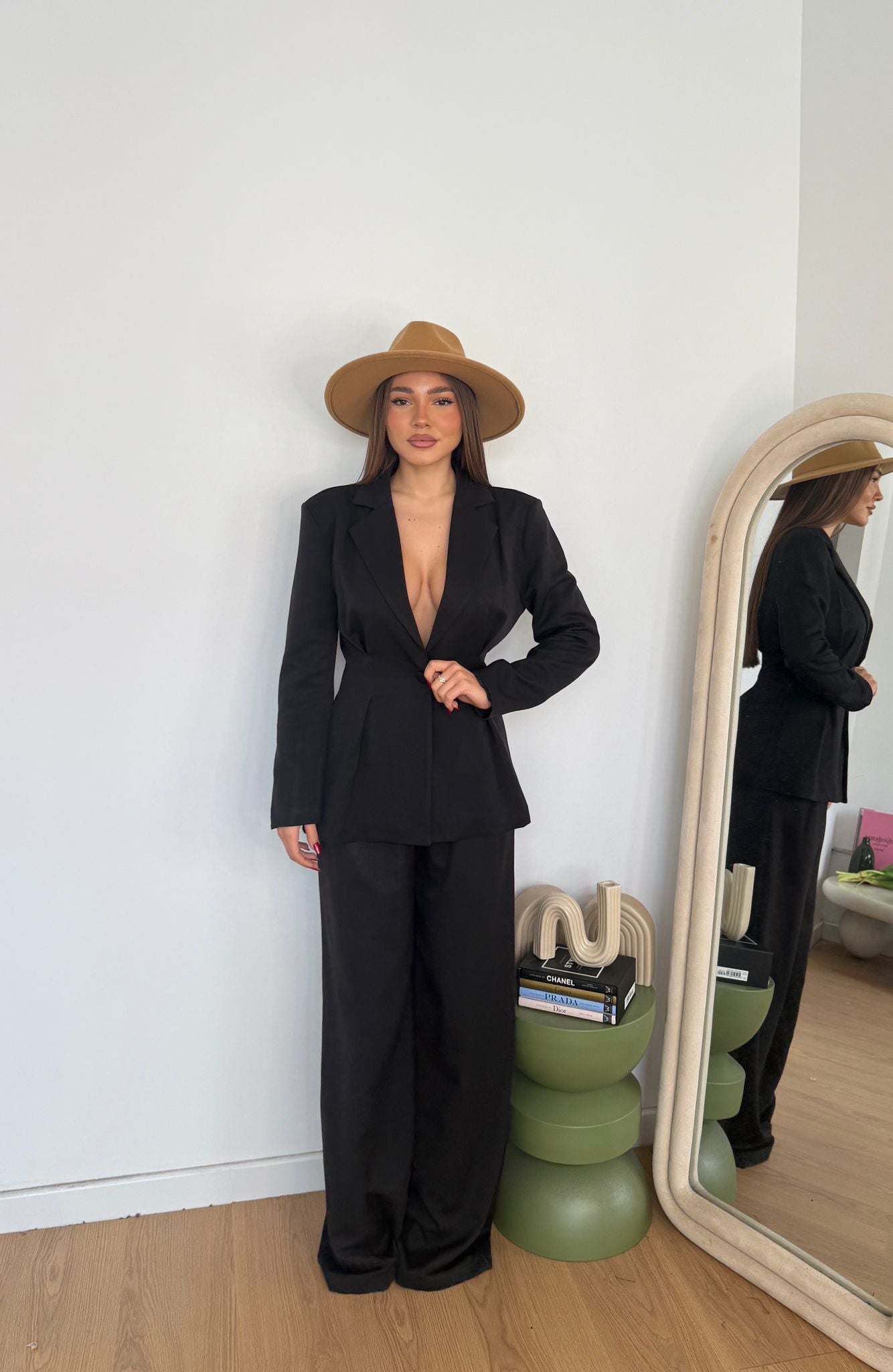 Coordinato da donna composto da giacca con spalline imbottite e pantalone con elastico in vita e vestirà bene fino ad una M/L