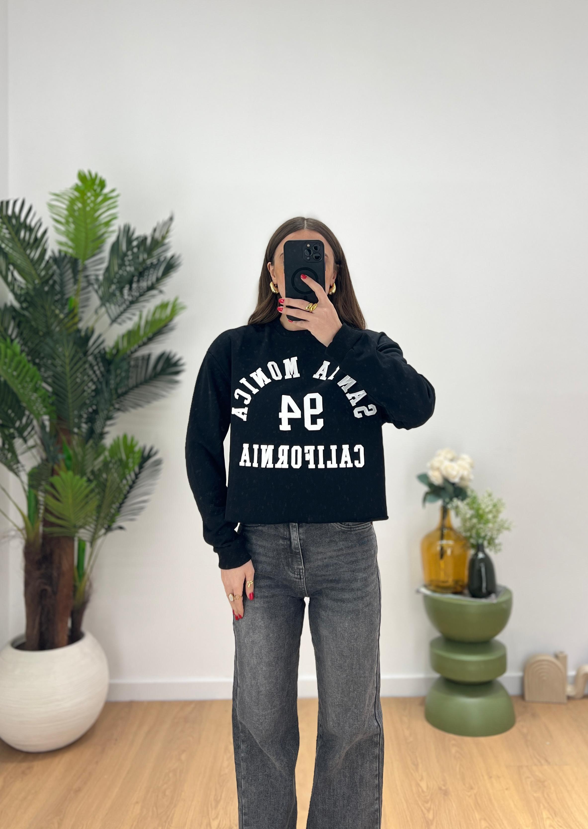 Felpa modello leggermente crop con taglio vivo sul finale, garzata internamente.