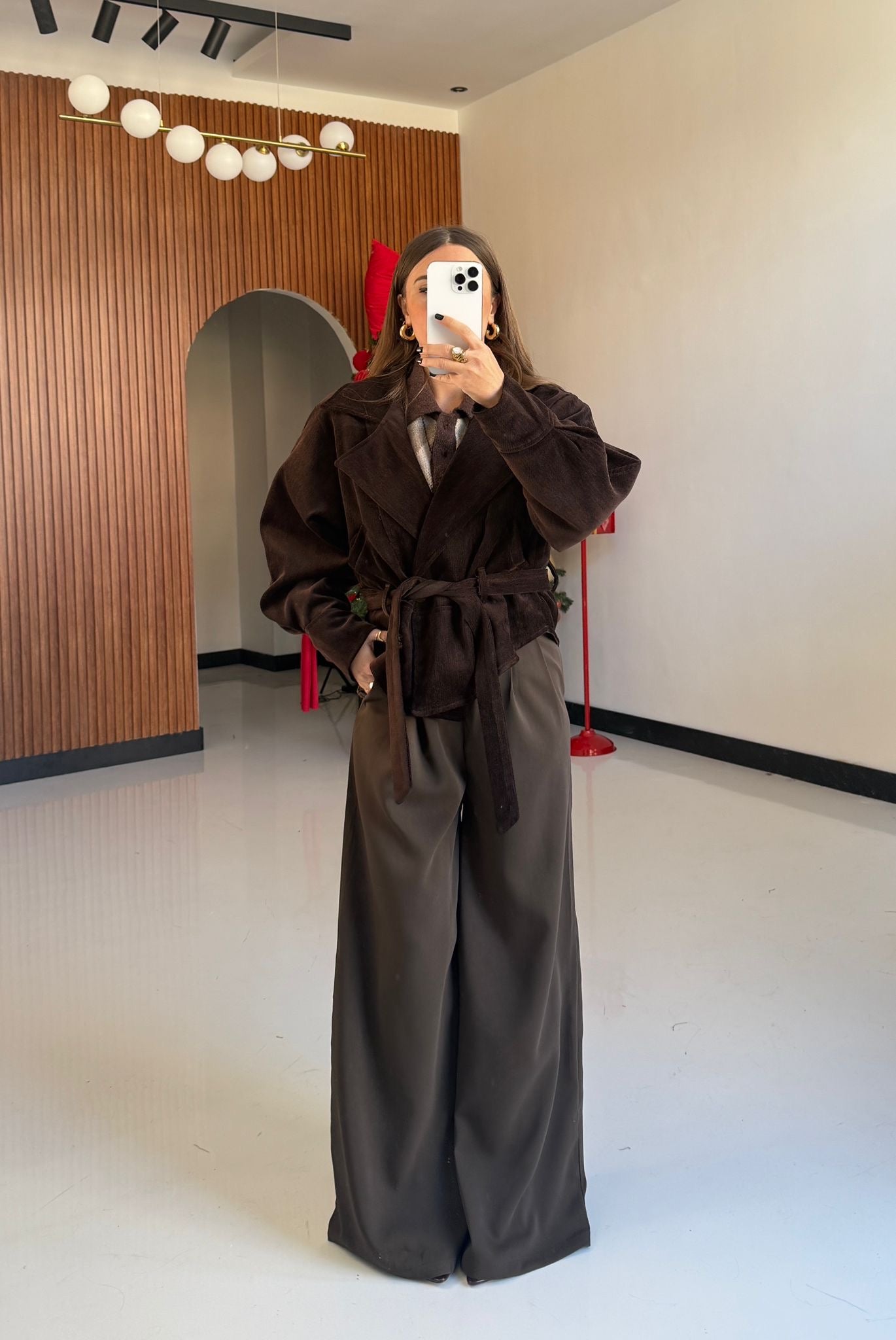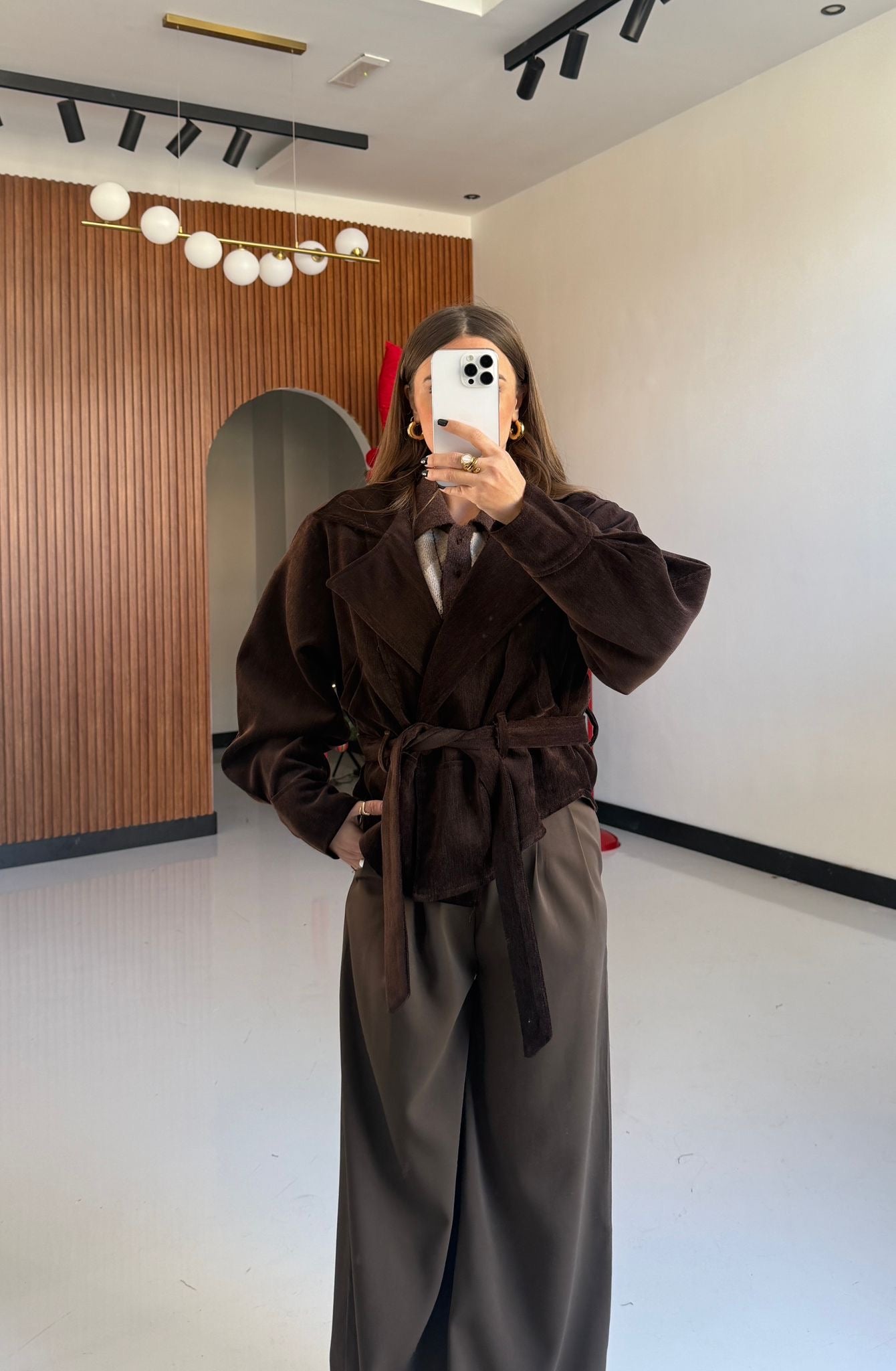 Giubbino da donna effetto camoscio foderato internamente con cinturino compreso, vestirà bene fino ad una M/L