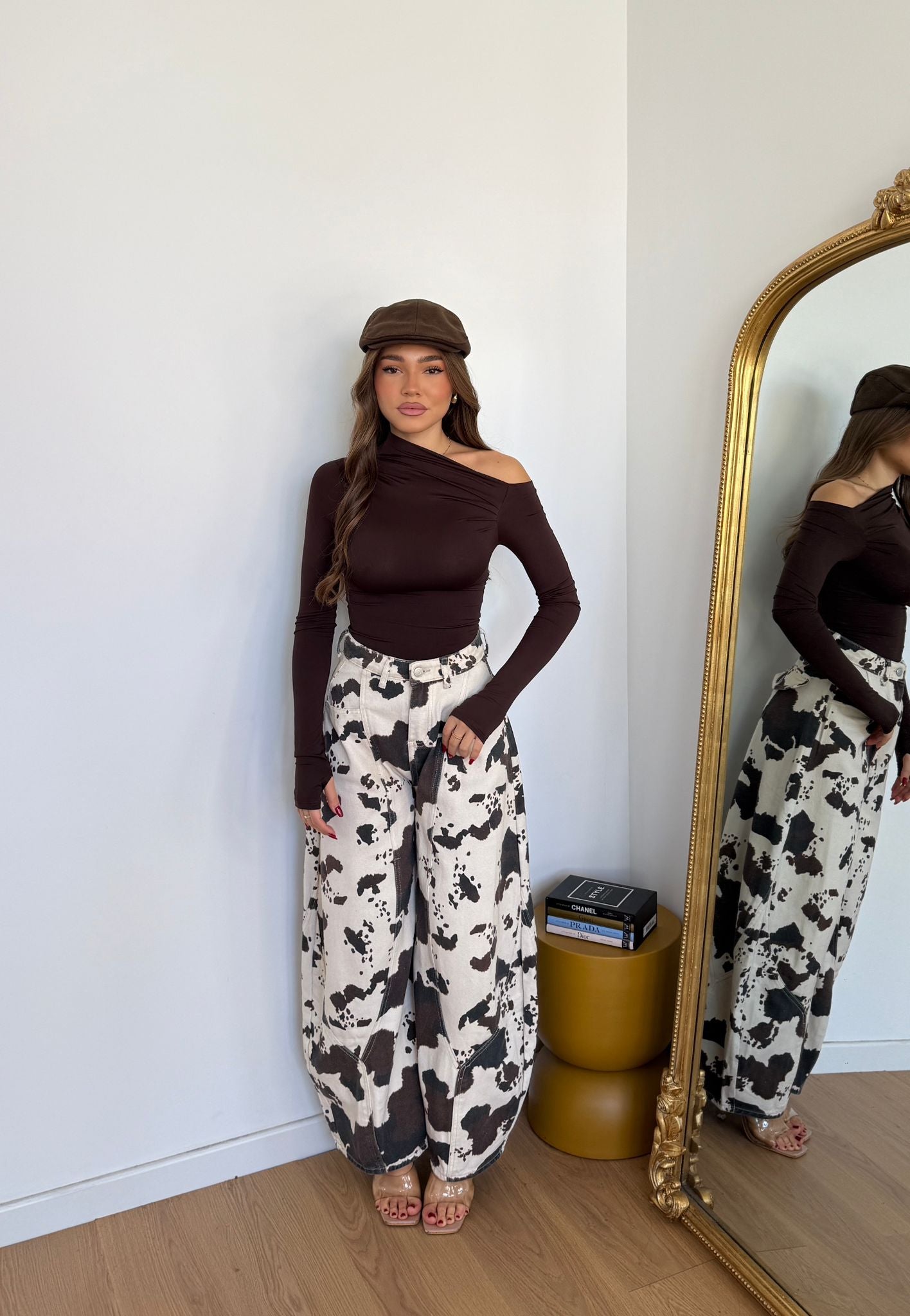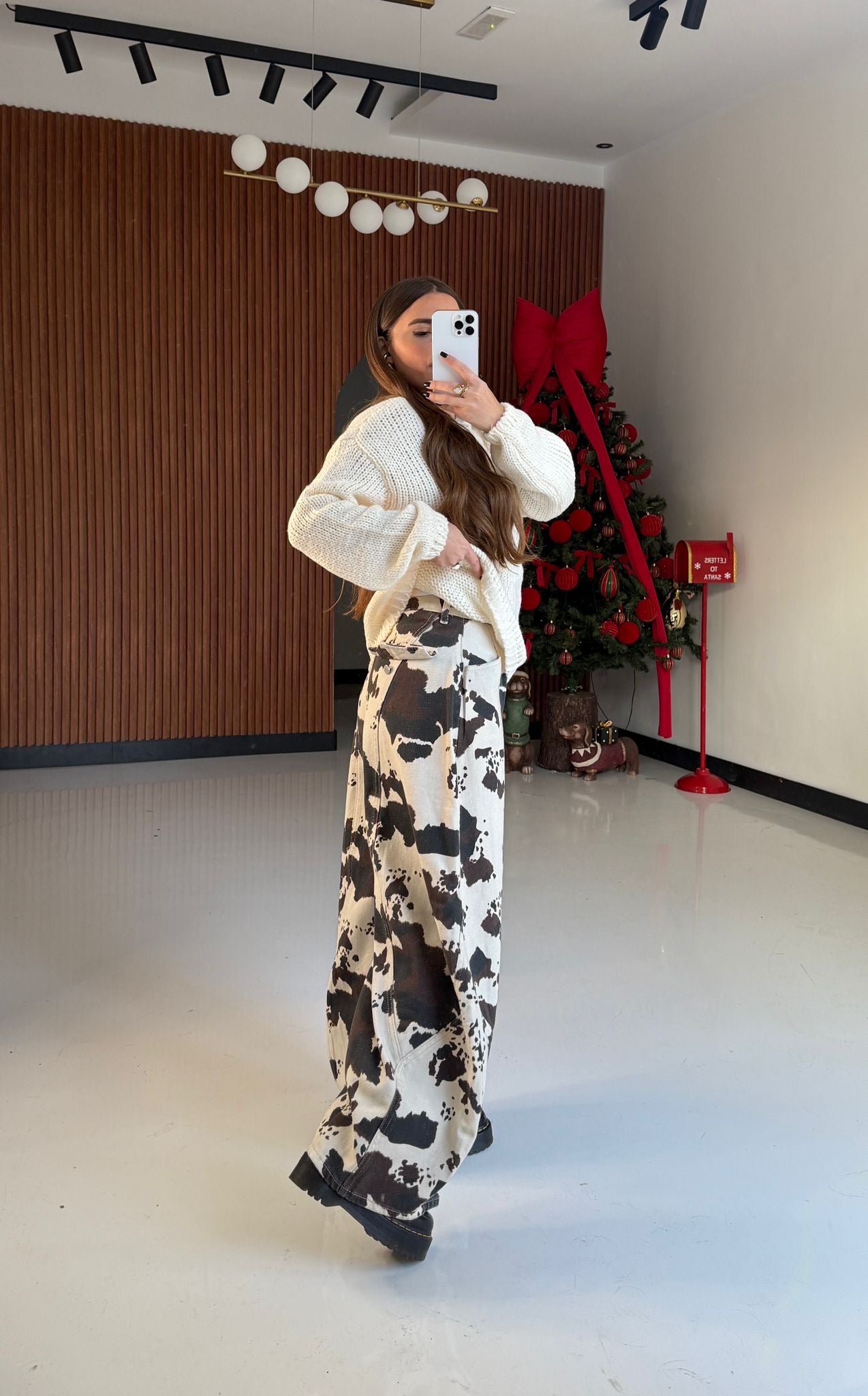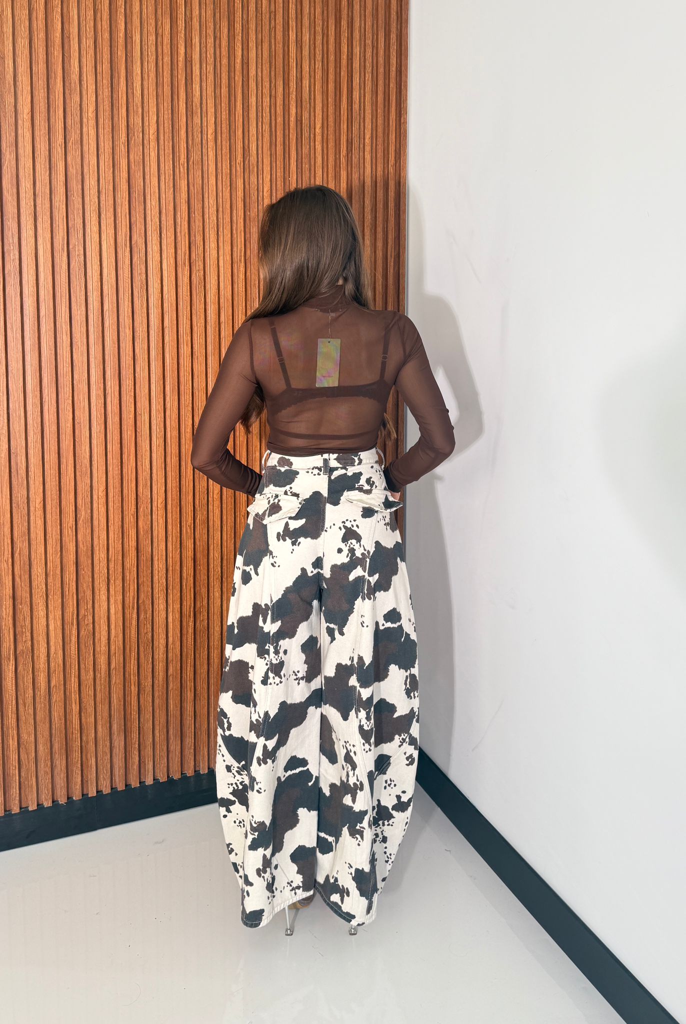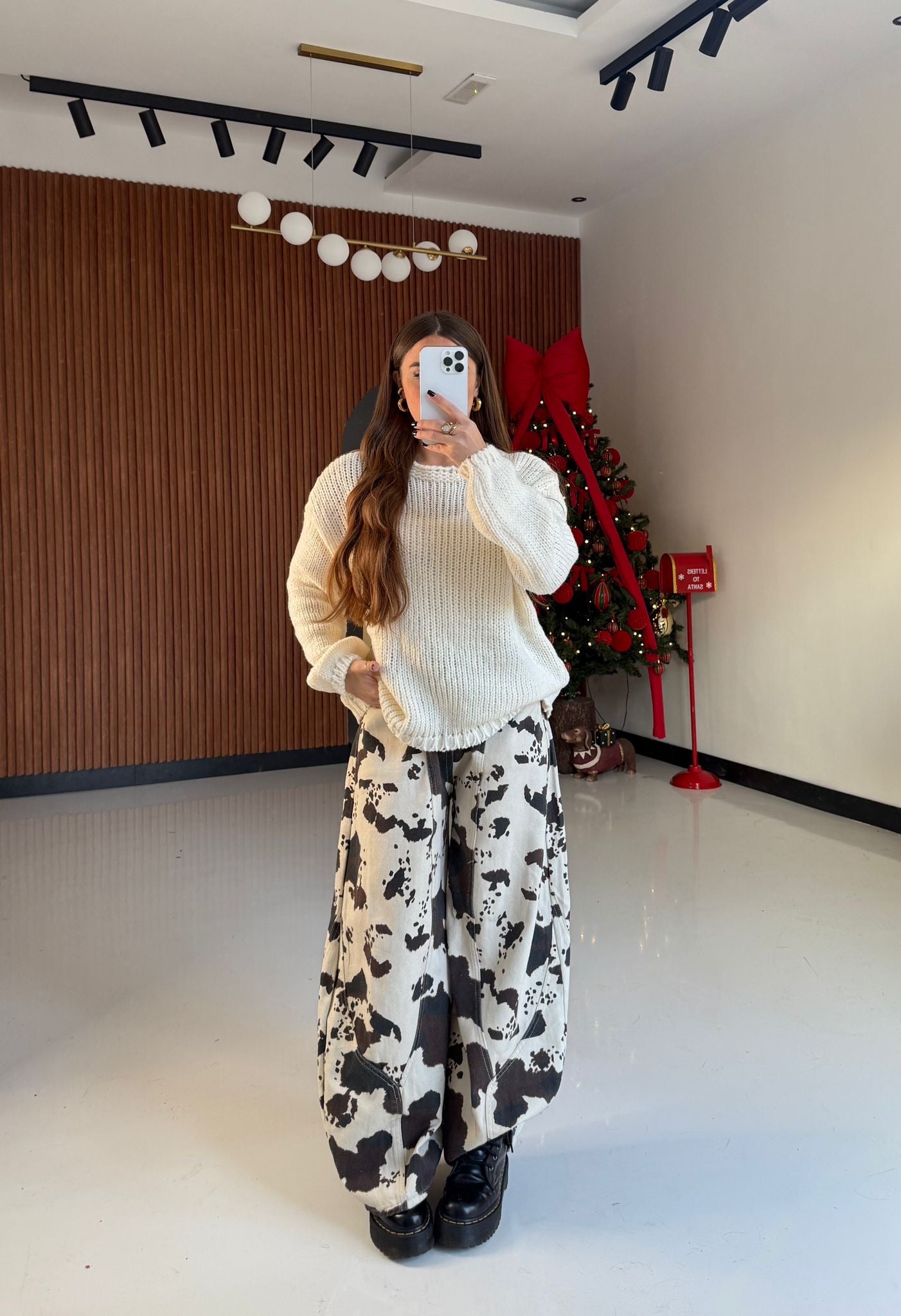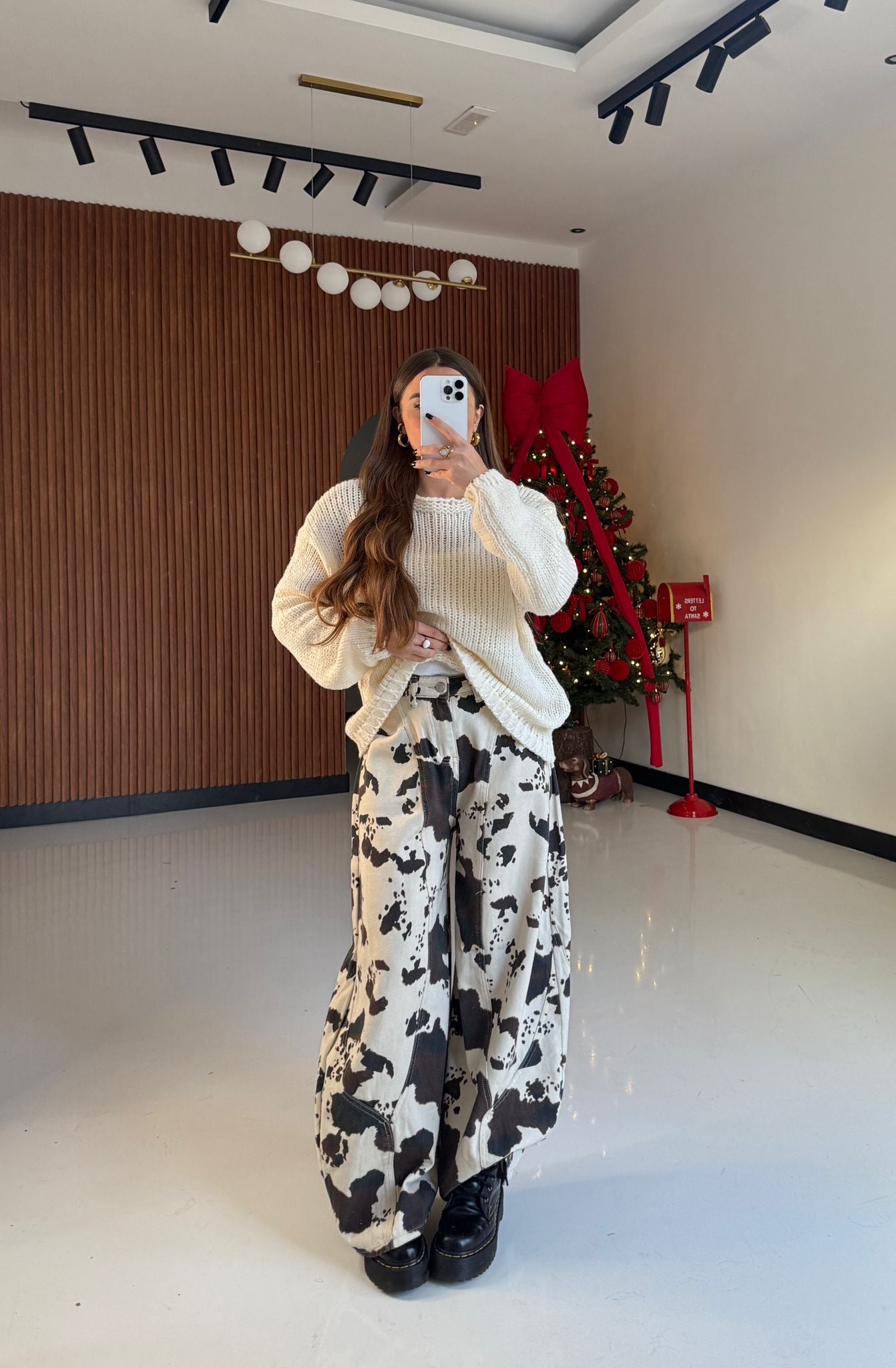 Jeans da donna fantasia COW in tela fissa e veste regolarmente la propria taglia e la modella indossa taglia S