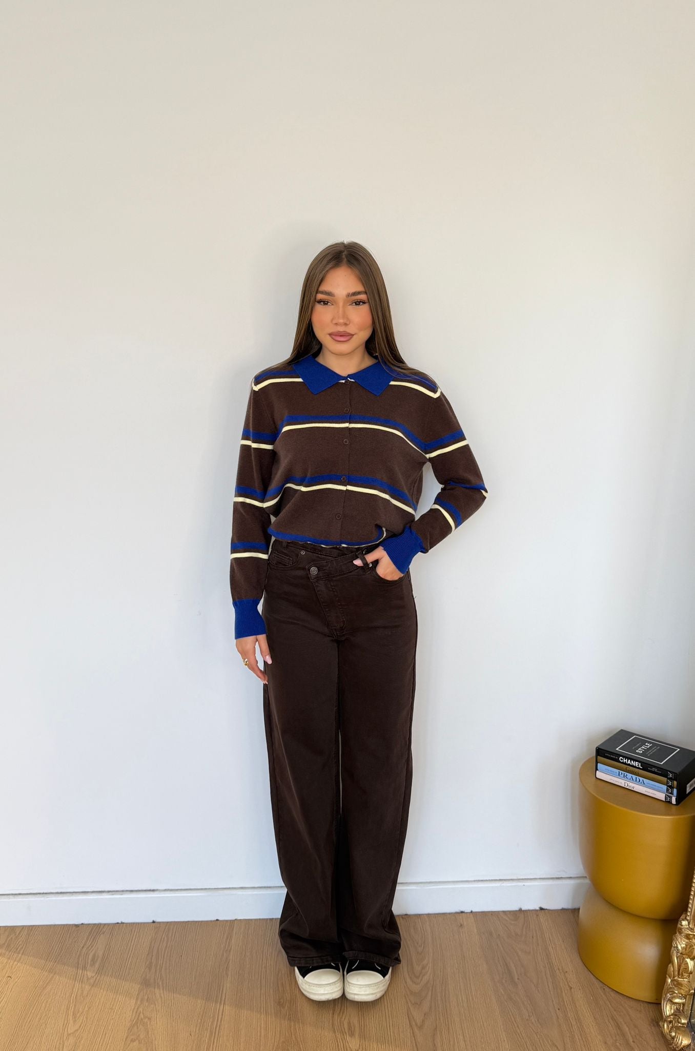 Jeans da donna tessuto semi elasticizzato, con doppio bottone. Veste regolarmente la propria taglia e la modella indossa taglia XS.