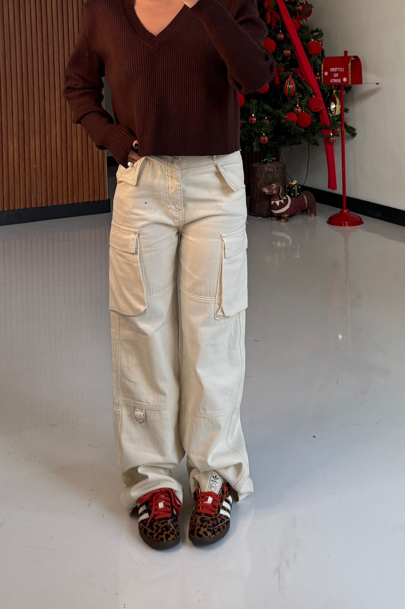 Jeans da donna modello cargo semi elasticizzato ma veste regolarmente la propria taglia e la modella indossa taglia XS