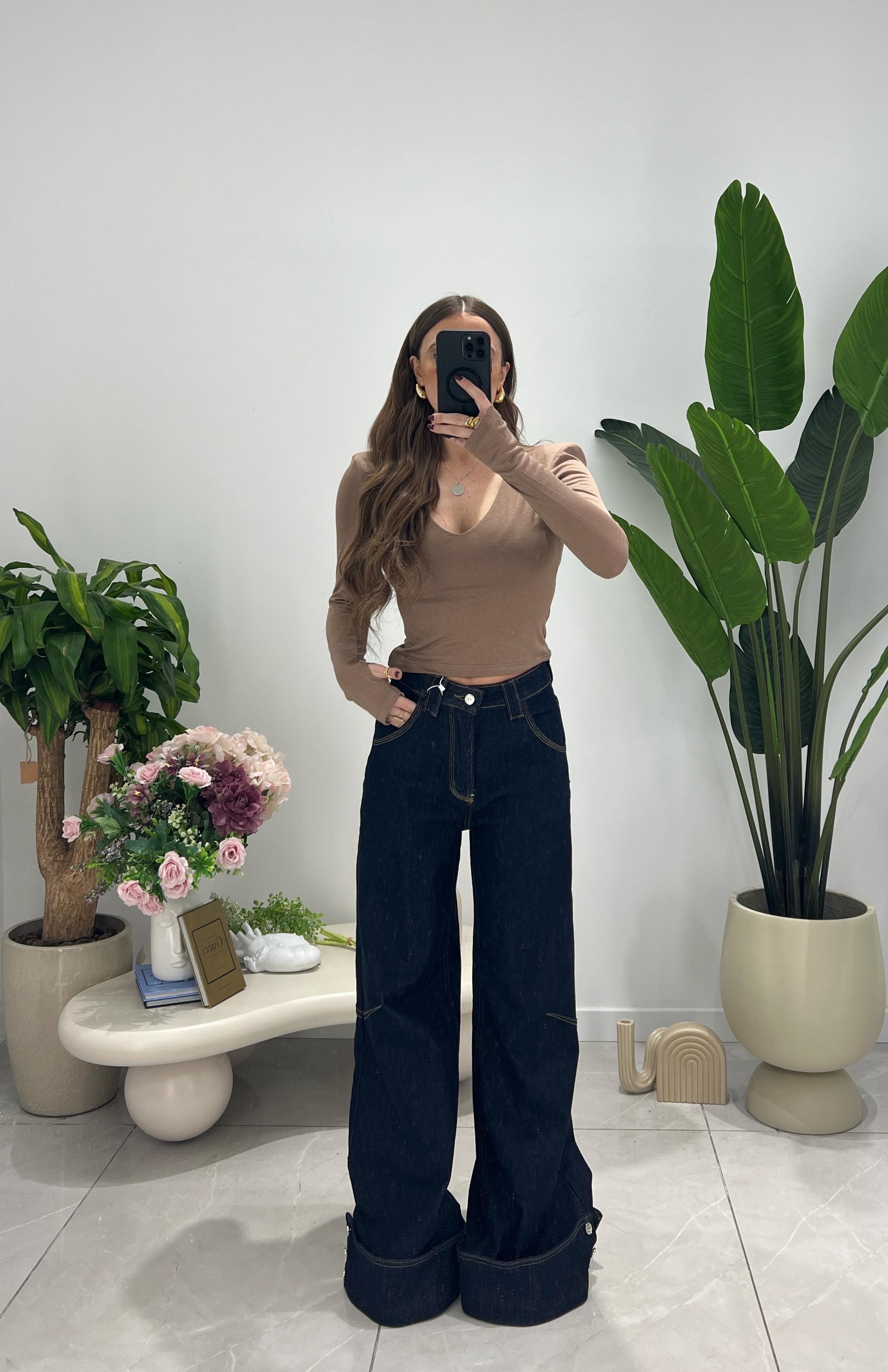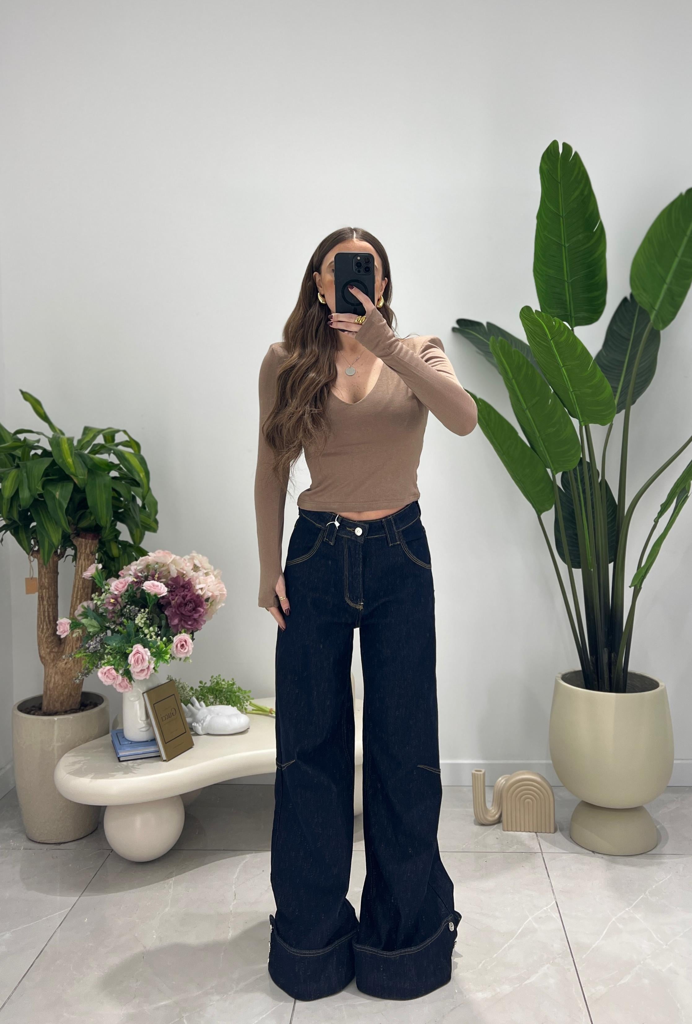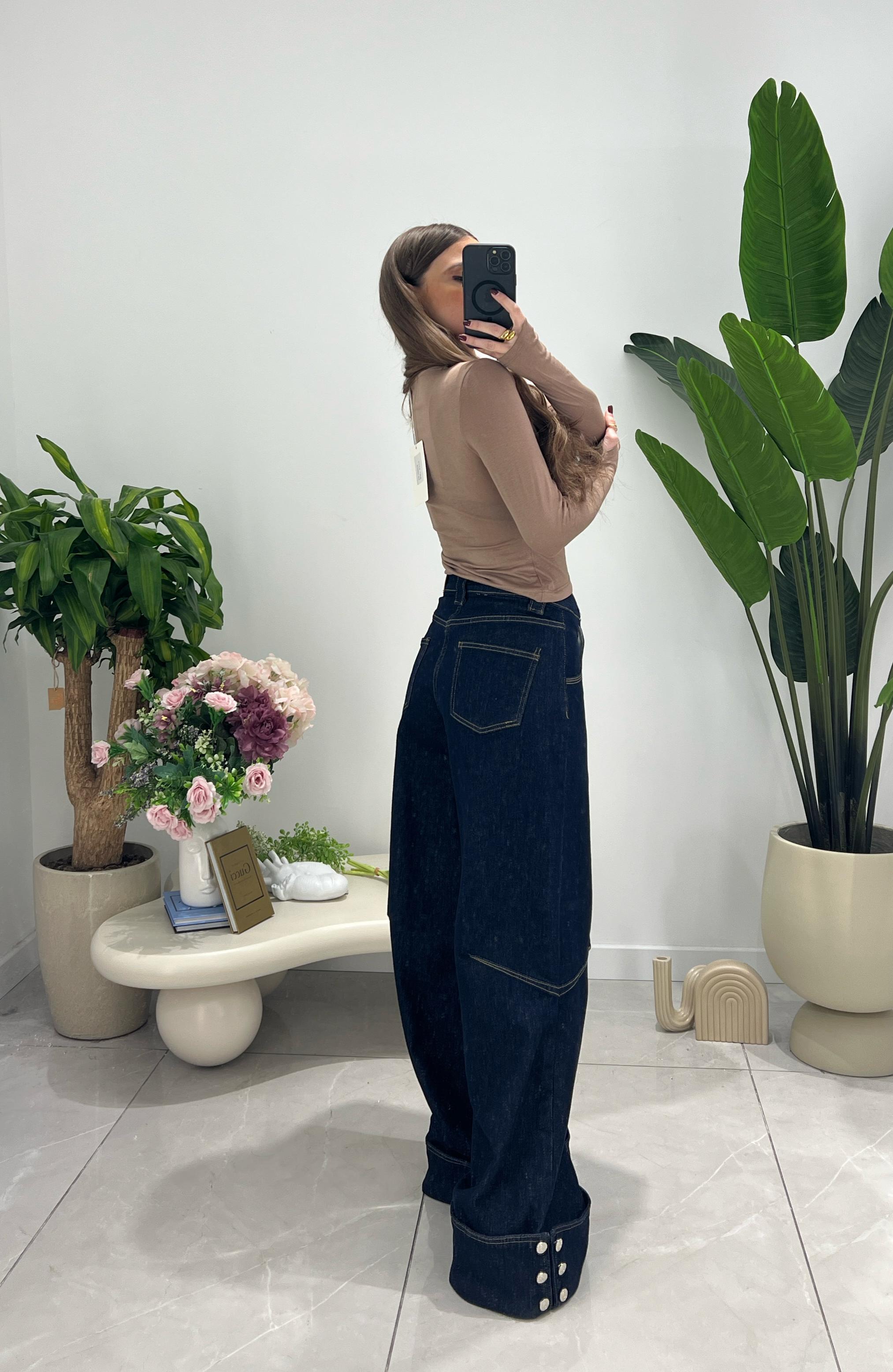 Jeans da donna a palazzo con risvolti sul finale e bottoncini laterali, tessuto elasticizzato ma veste regolarmente la propria taglia e Giusy indossa taglia S