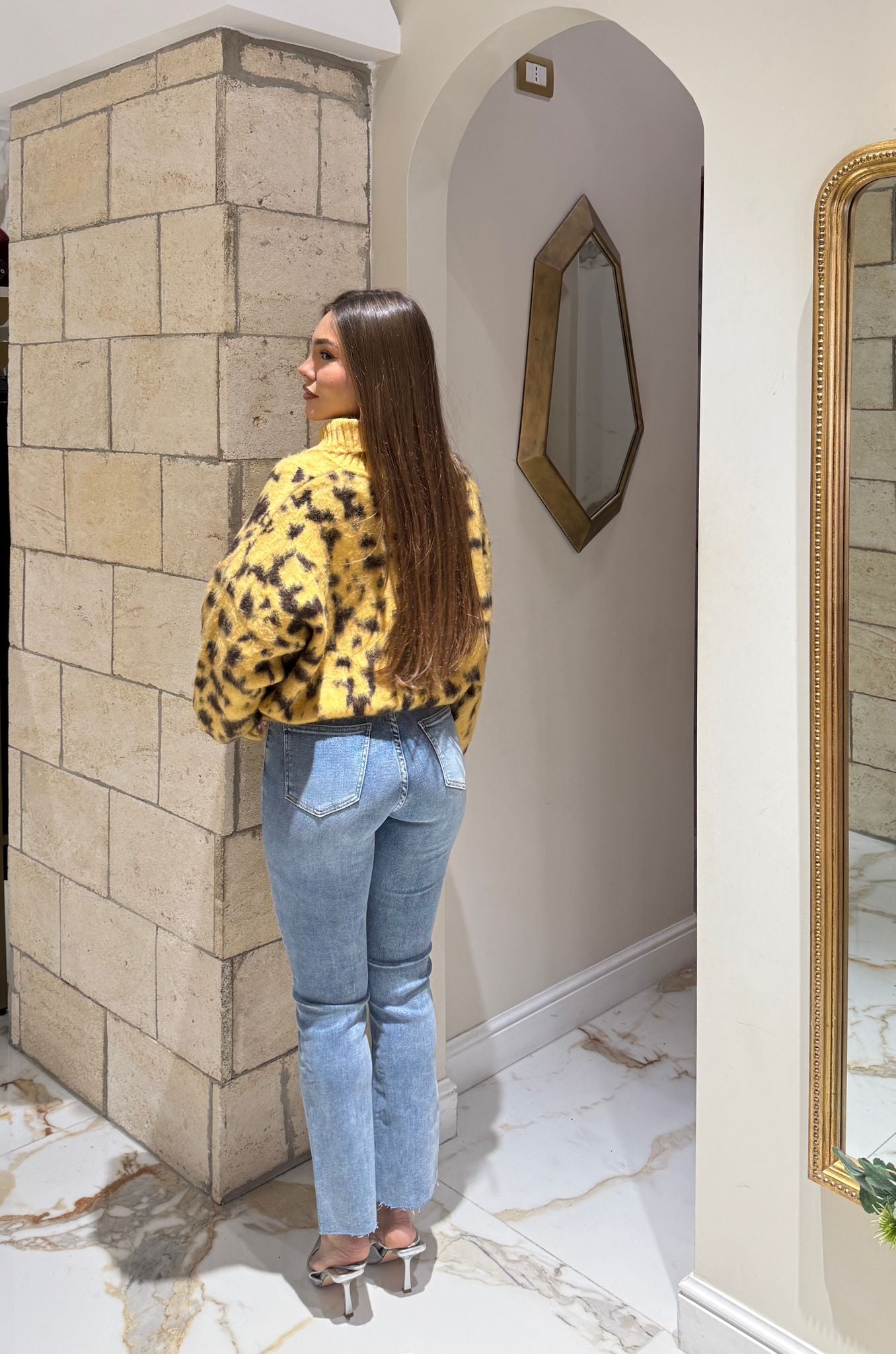 Jeans da donna in denim tessuto elasticizzato con taglio laser sul finale e vestirà bene la propria taglia, la modella indossa taglia XS