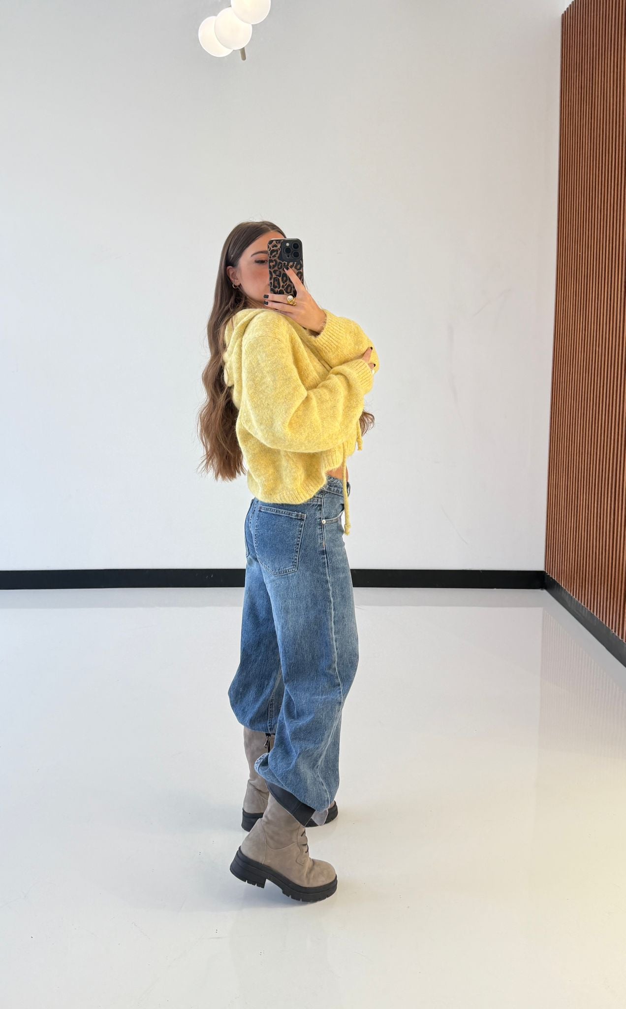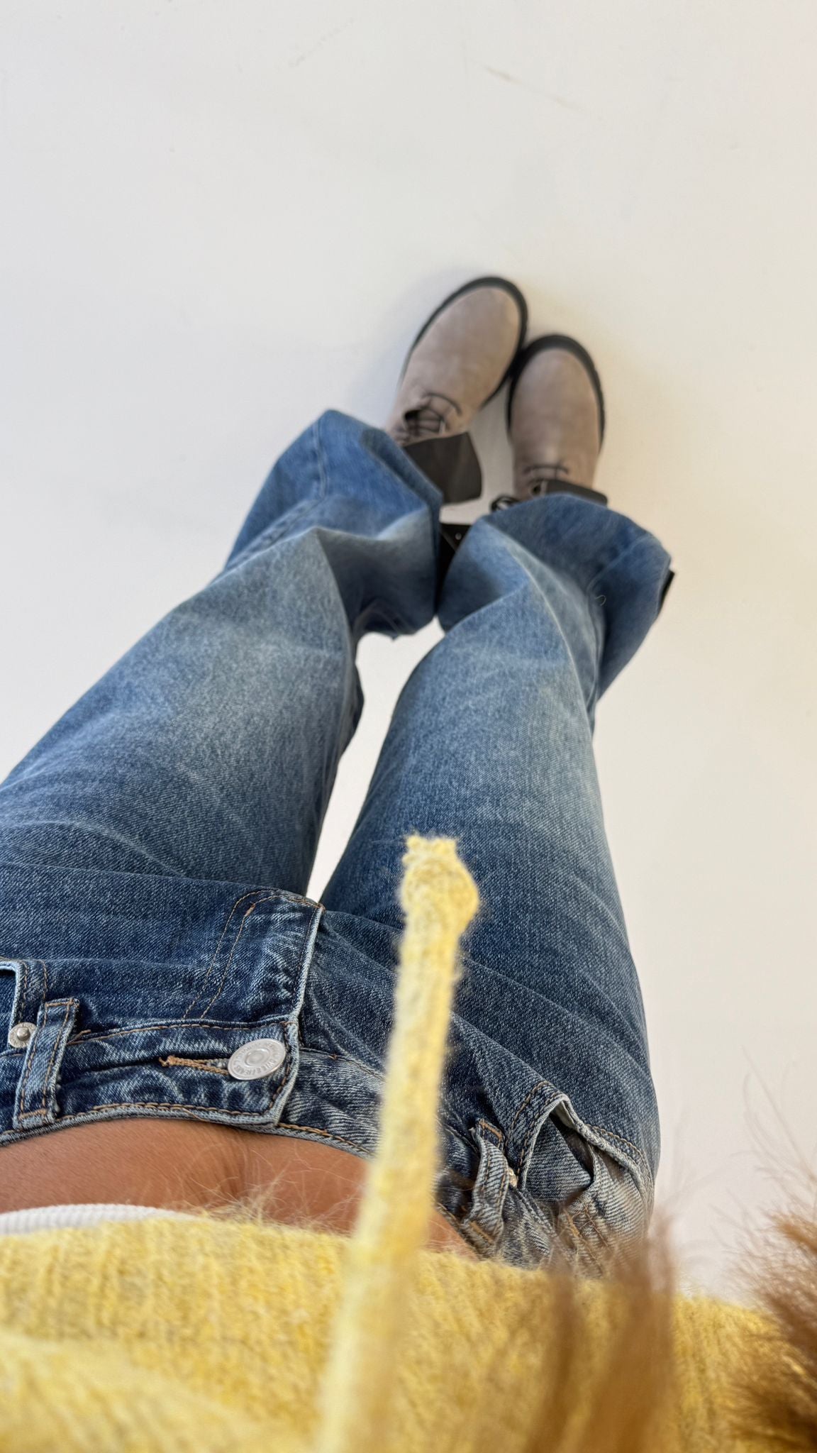 Jeans da donna in denim modello wide-leg tessuto semi elasticizzato e veste regolarmente la propria taglia e la modella indossa taglia XS
