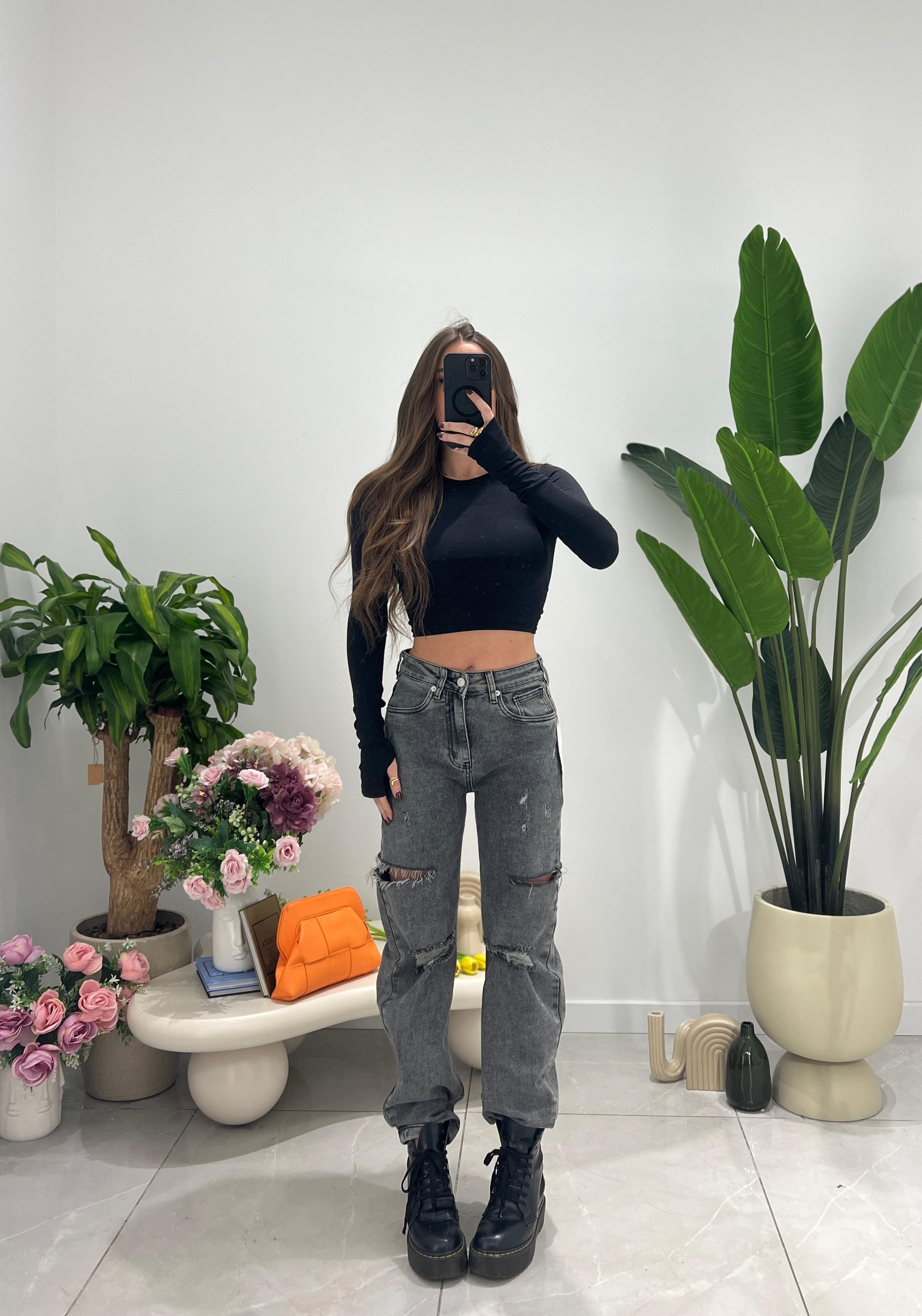 Jeans da donna in denim nero tessuto elasticizzato ma veste regolarmente la propria taglia e giusy indossa taglia XS
