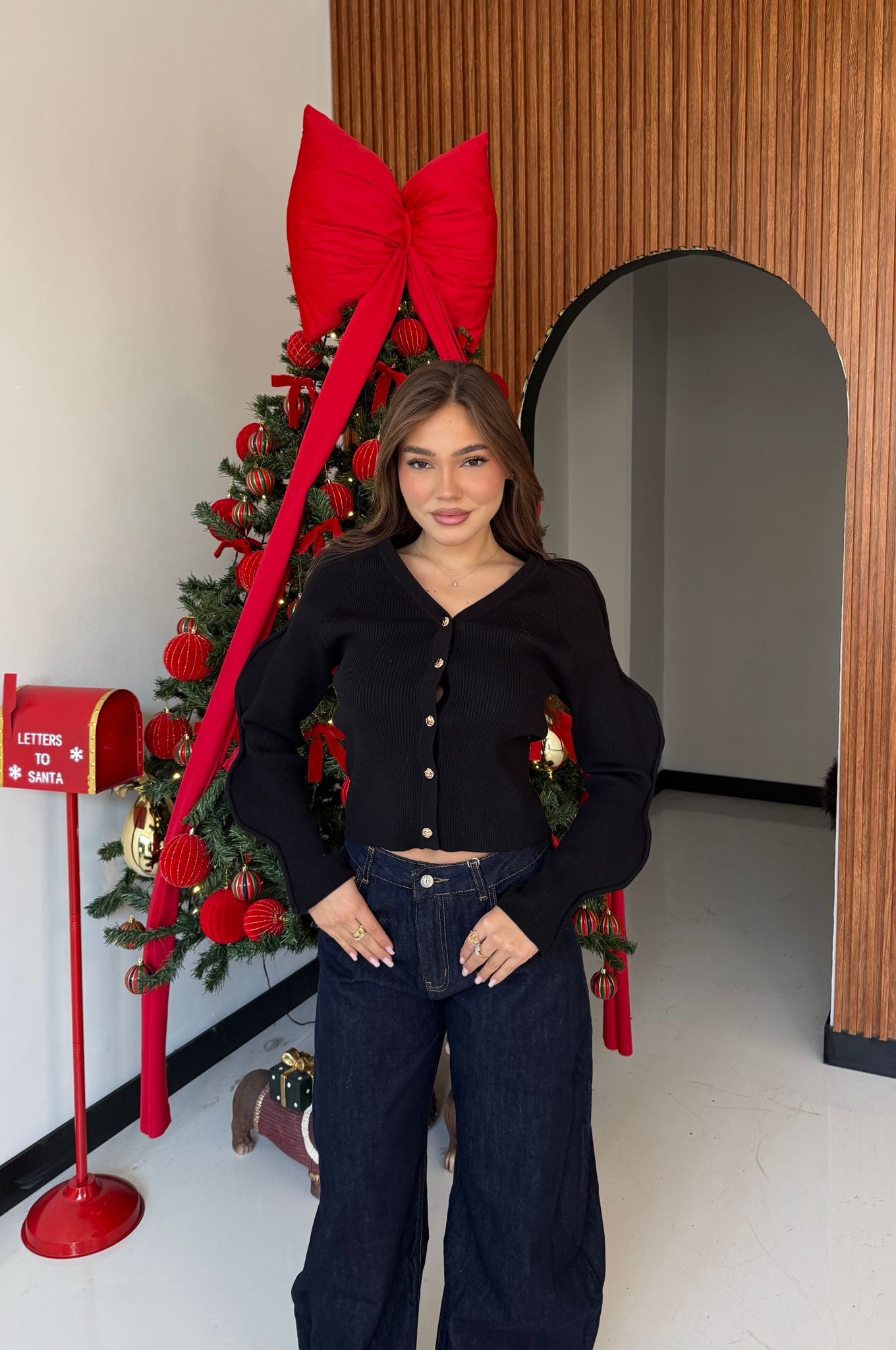 Maglioncino da donna in caldo cotone effetto costine con bottoncini apribili sul davanti e particolarità manica ad onda, tessuto elasticizzato e vestirà bene fino ad una M/L