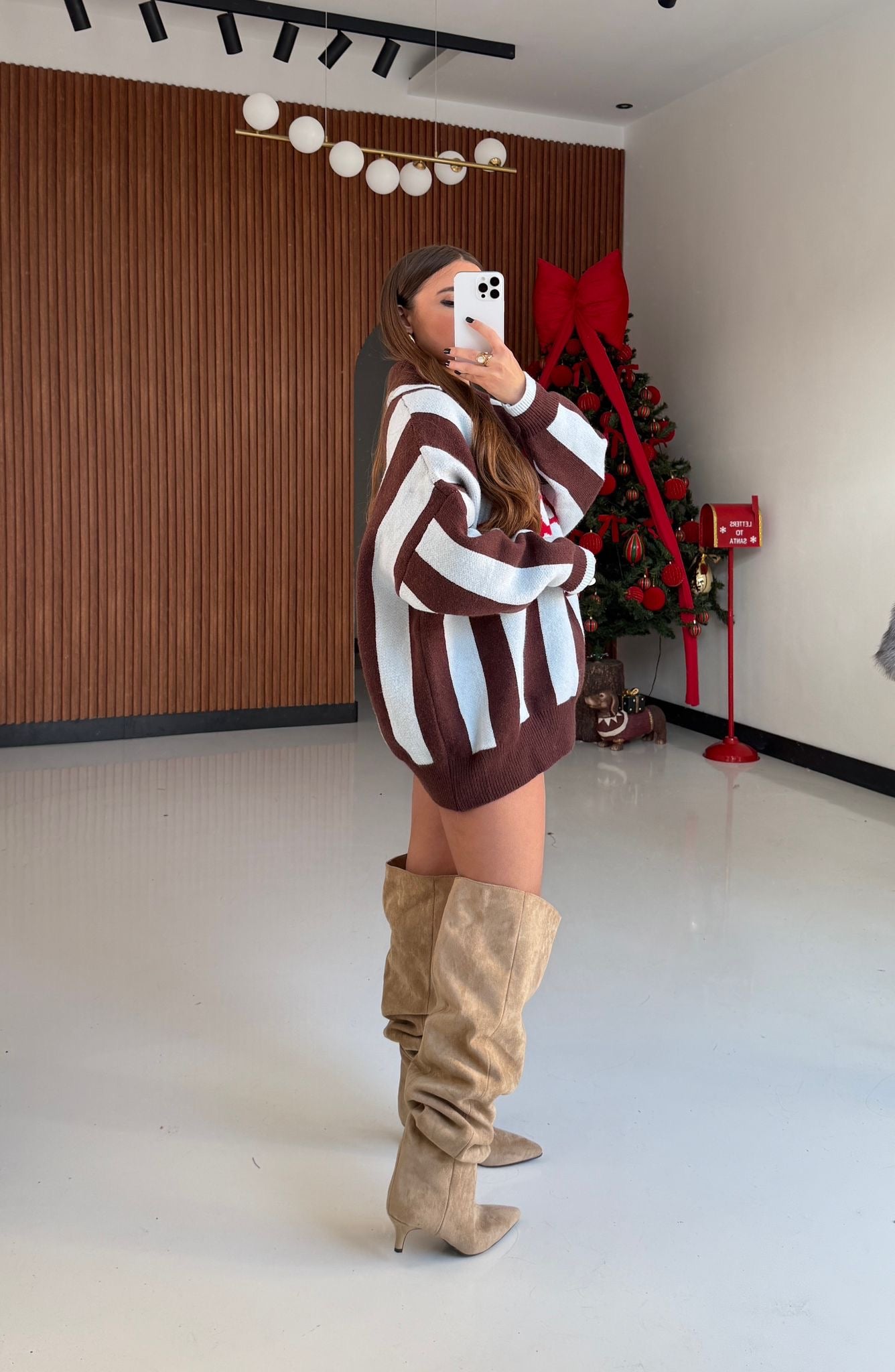 Maglione da donna, modello oversize, tessuto elasticizzato, con polsini ed elastico sul sul finale. Taglia unica, veste bene fino ad una taglia L/XL.