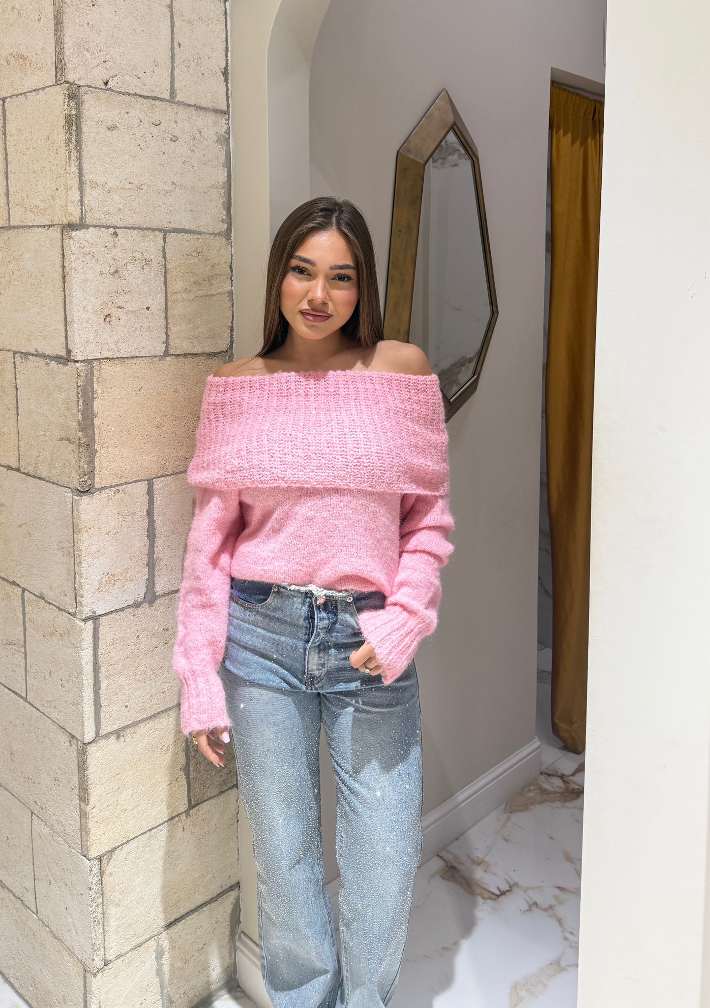Maglione da donna in lana rasata con scollo a barca e polsini tessuto elasticizzato con vestibilità over e vestirà bene fino ad una M/L piena