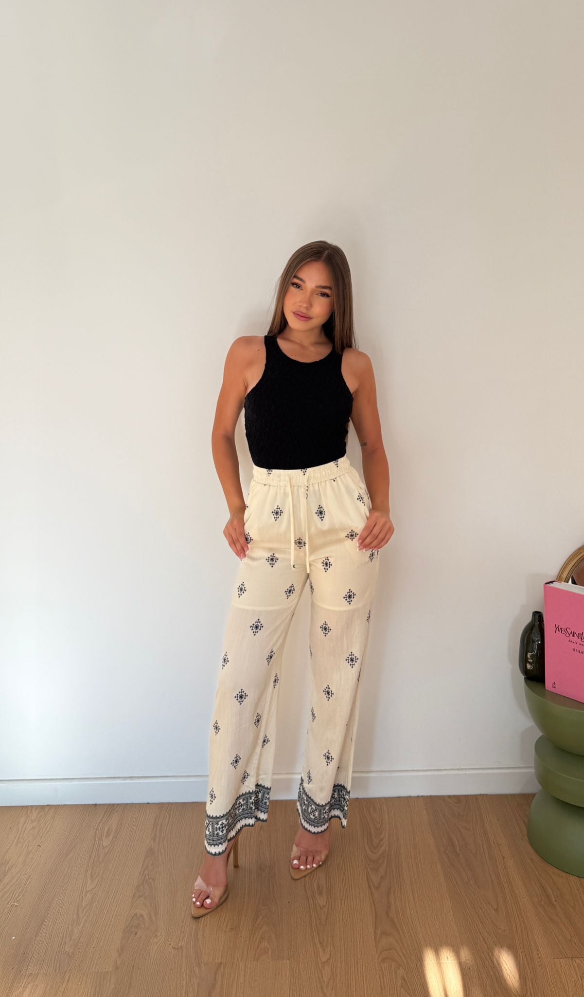 Pantalone da donna in semi Lino con shorts interno, elastico in vita e veste regolarmente la propria taglia e la modella indossa taglia S/M