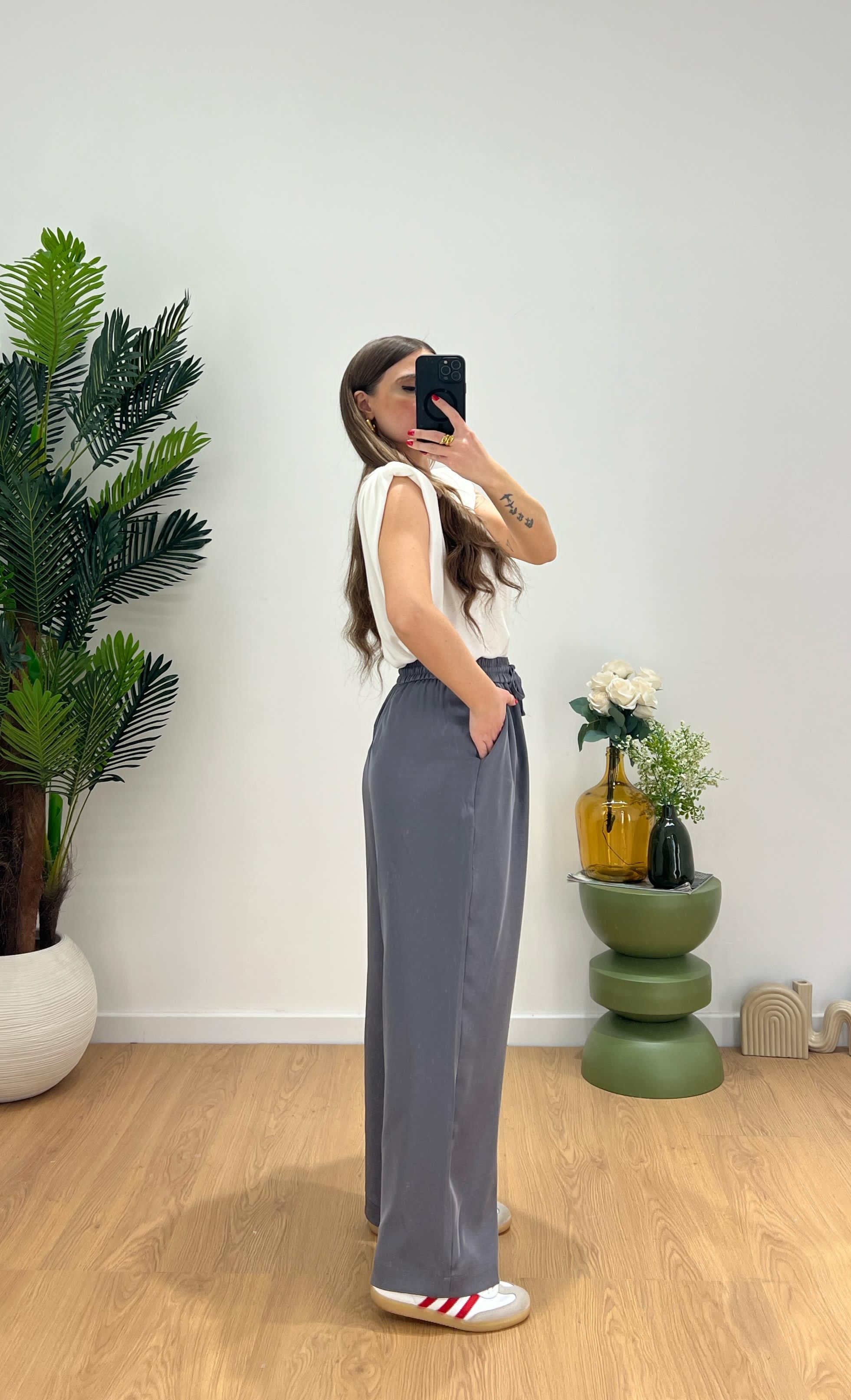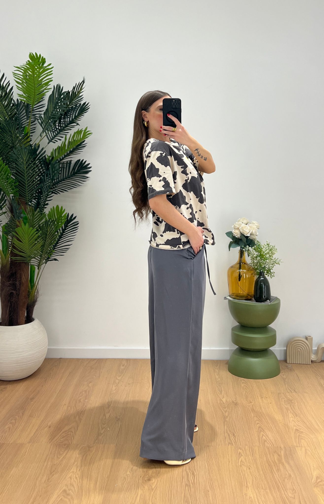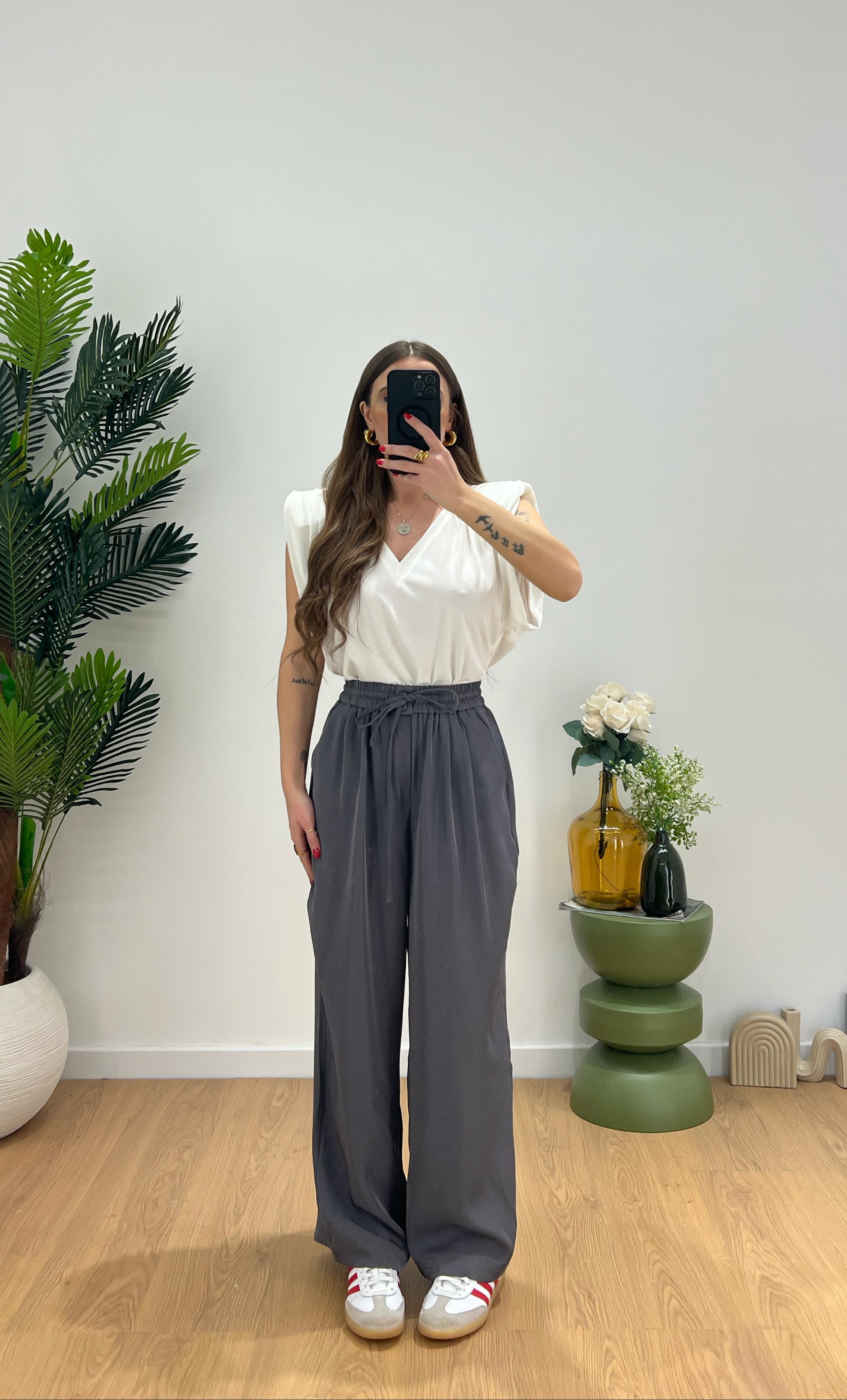 Pantalone da donna con elastico in vita e laccio regolabile, vestibilità morbida ma veste regolarmente la propria taglia e giusy indossa taglia S