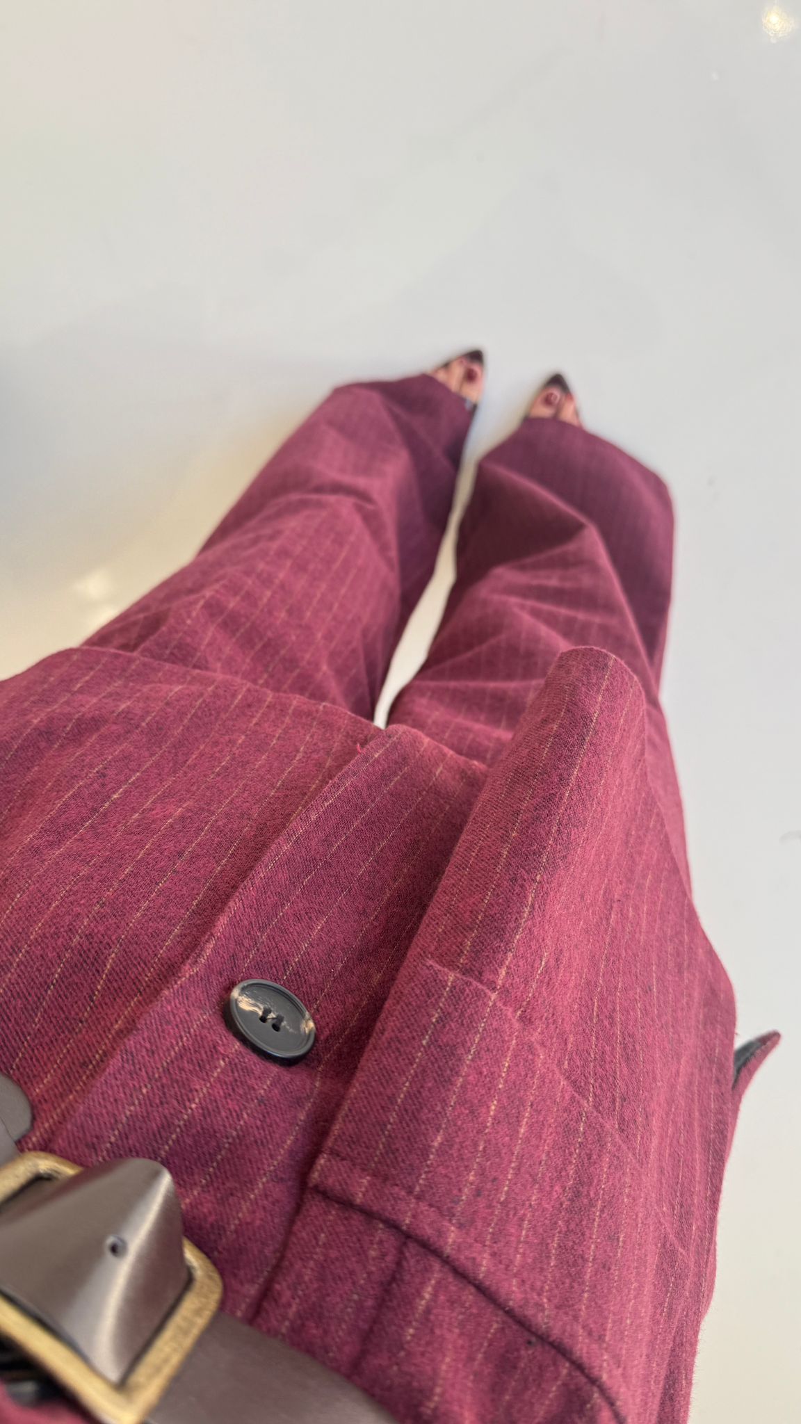 Pantalone da donna fantasia gessata con elastico sul retro e chiusura con bottoncino e zip sul davanti e vestirà bene fino ad una M/L