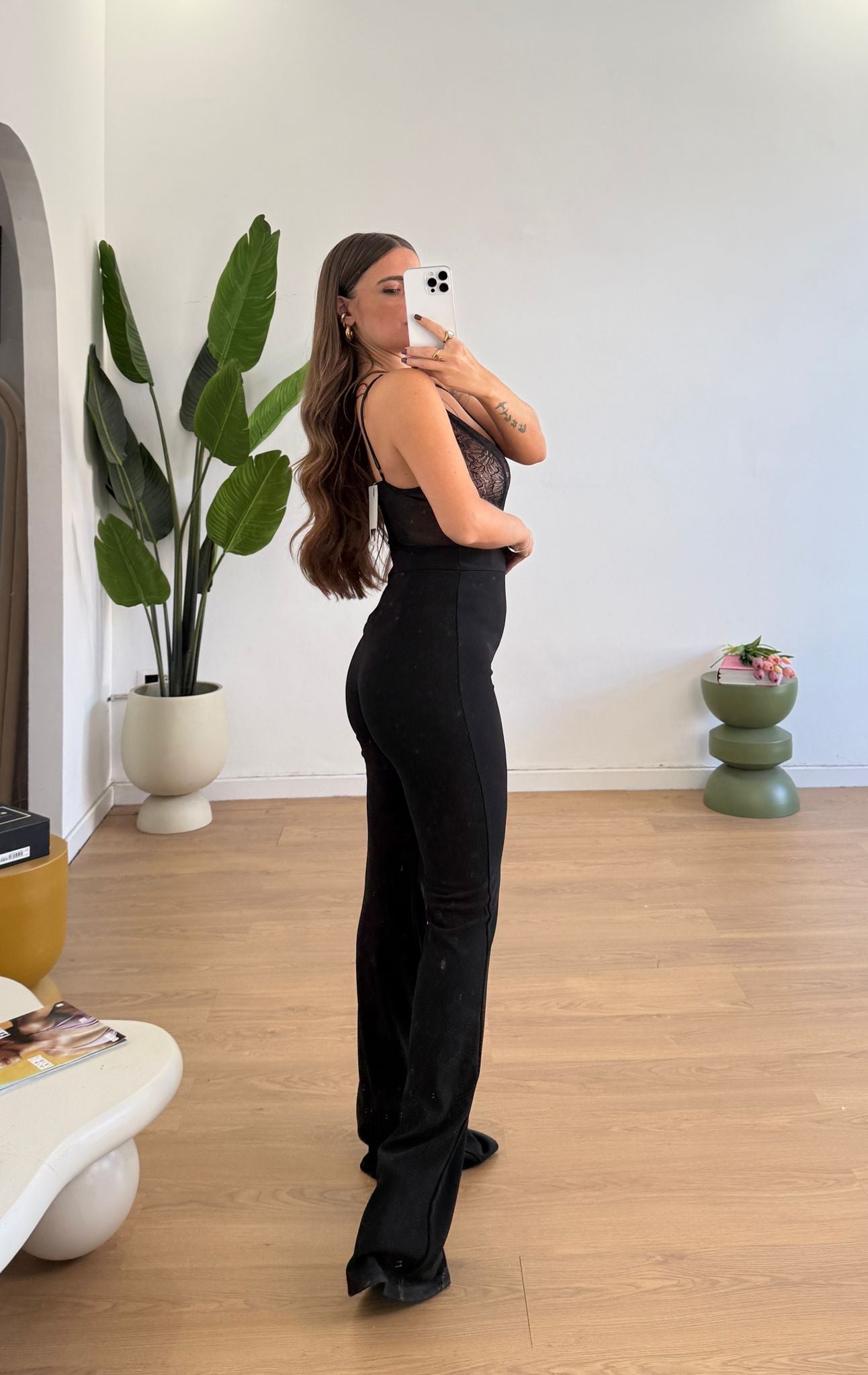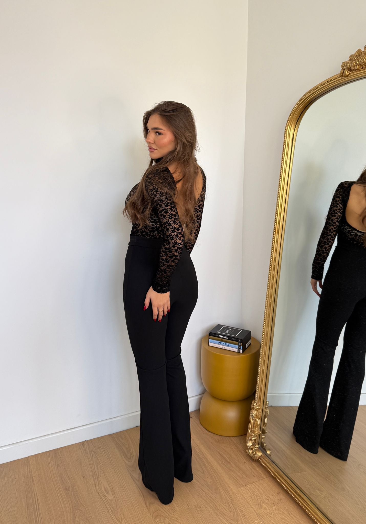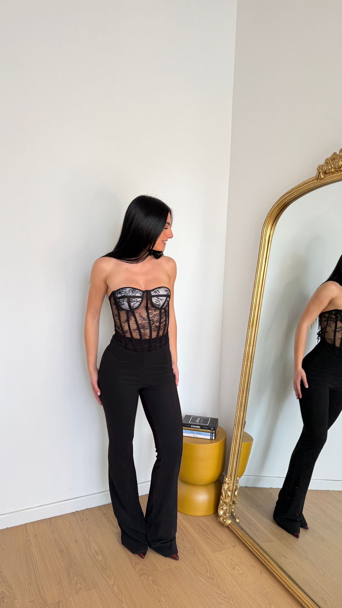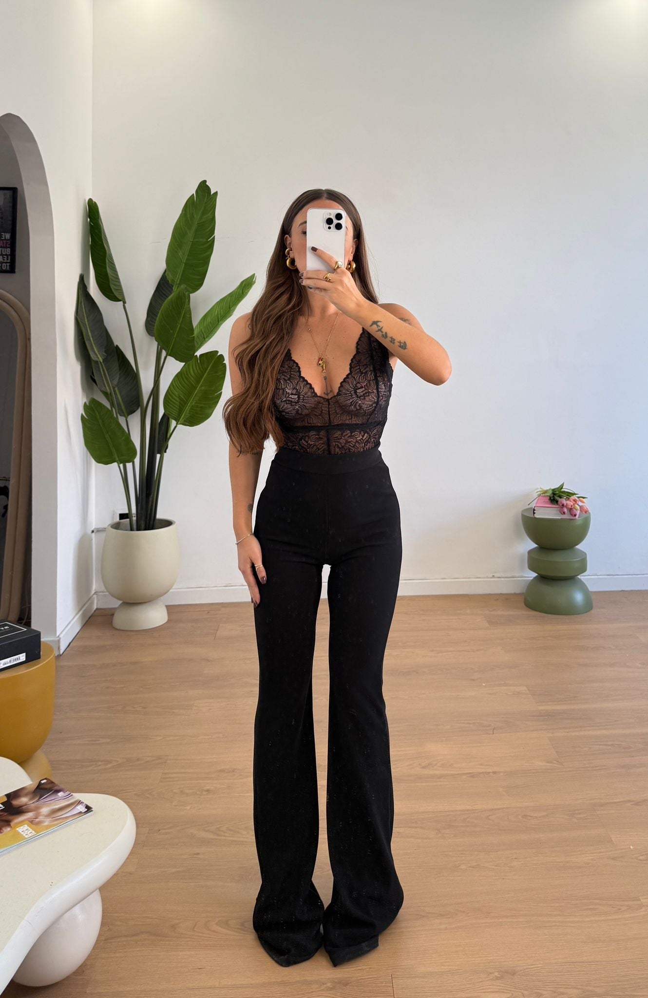Pantalone da donna a zampa vita alta con elastico in vita interno e vestirà bene fino ad una M/L