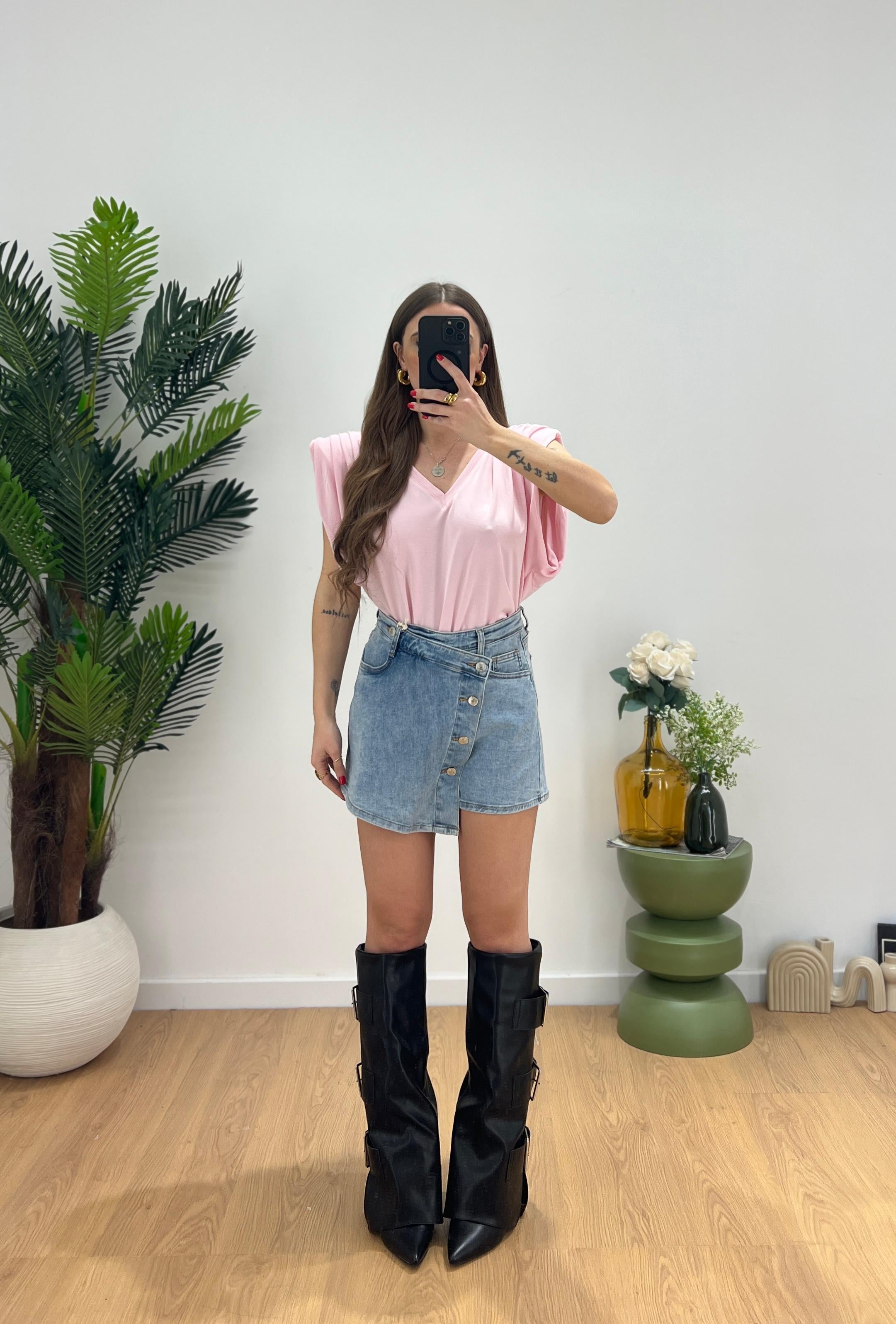 Shirt da donna con spalline, tessuto cotone leggero e scollo a V sul davanti e veste regolarmente la propria taglia e giusy indossa taglia S/M