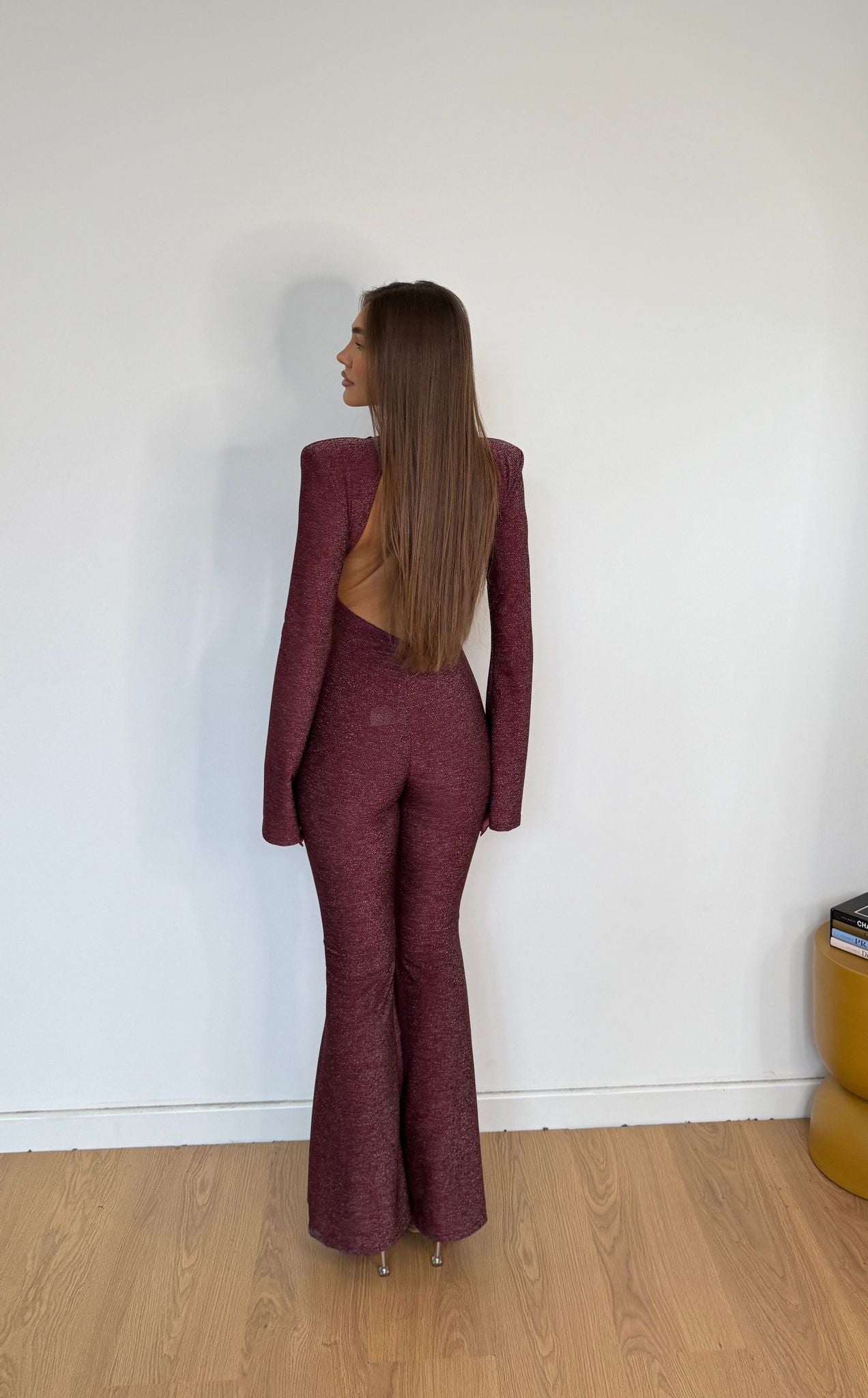 Tutone da donna a zampa in lurex tessuto elasticizzato con spalline imbottite e schiena scoperta, vestibilita fino ad una M/L