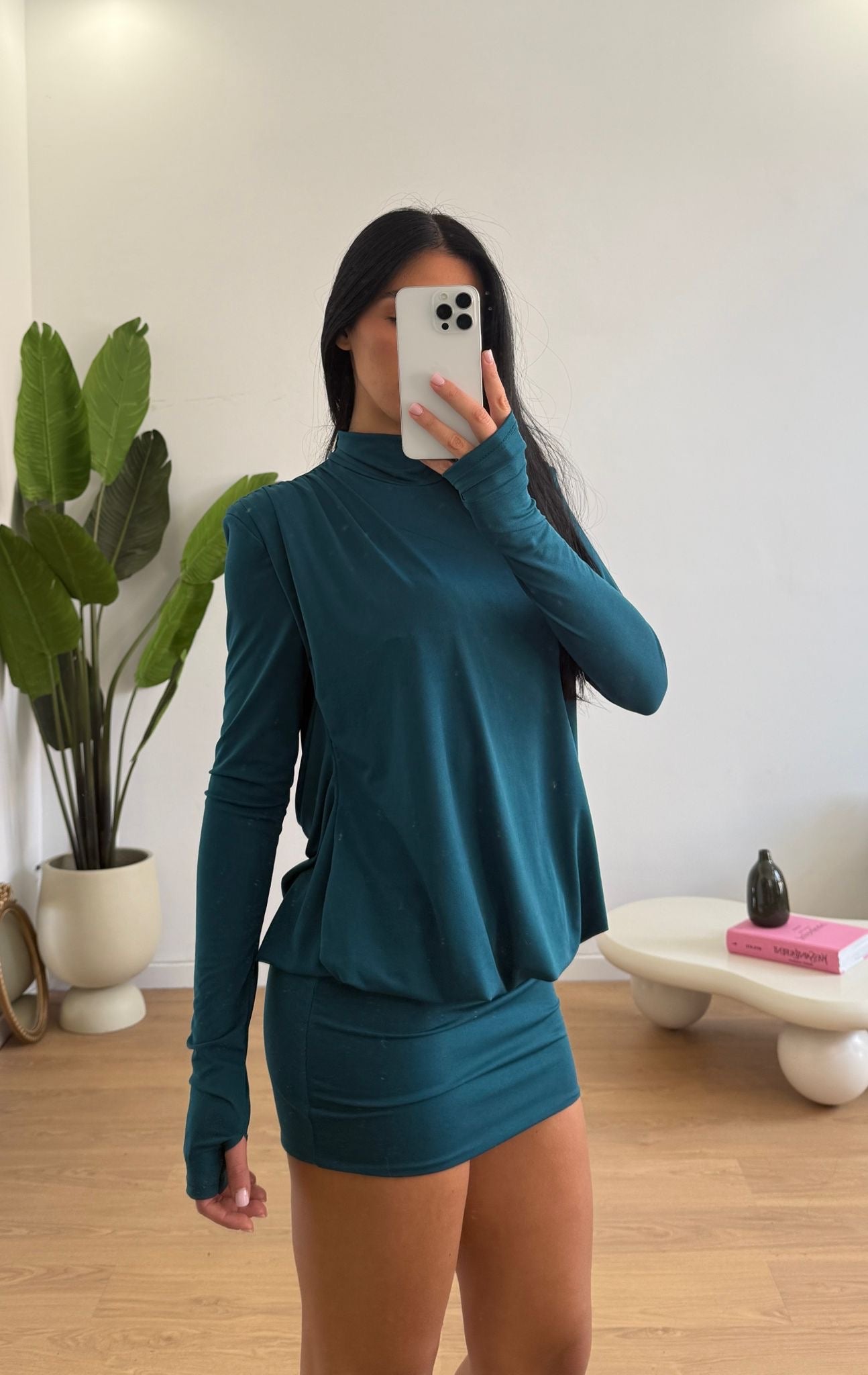 Vestitino da donna con spalline imbottite, mezzo colletto e scollatura morbida e profonda sul retro. Tessuto elasticizzato e vestirà bene fino ad una M/L