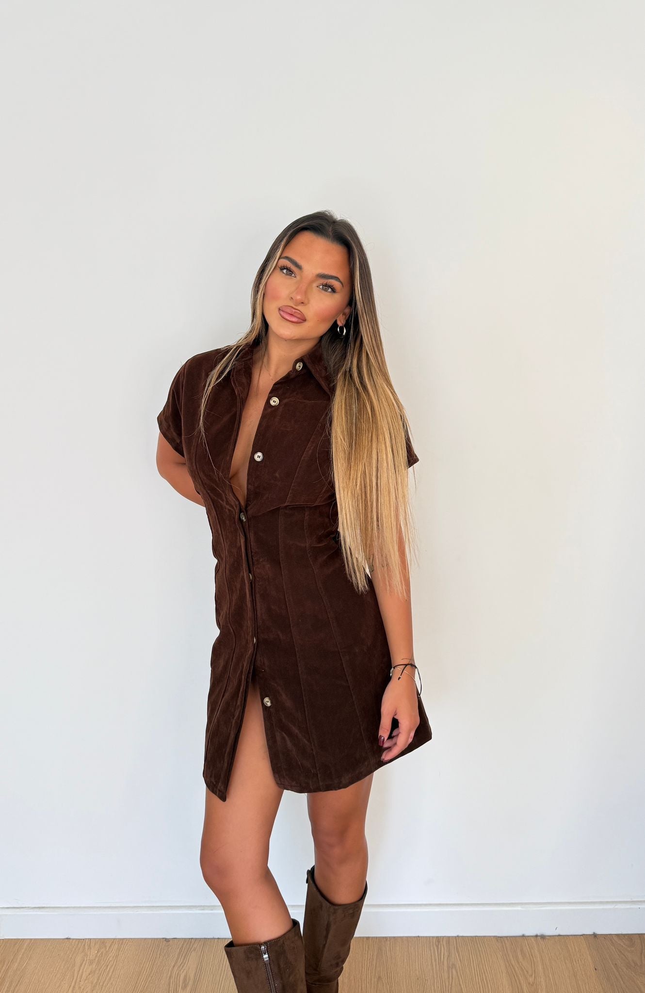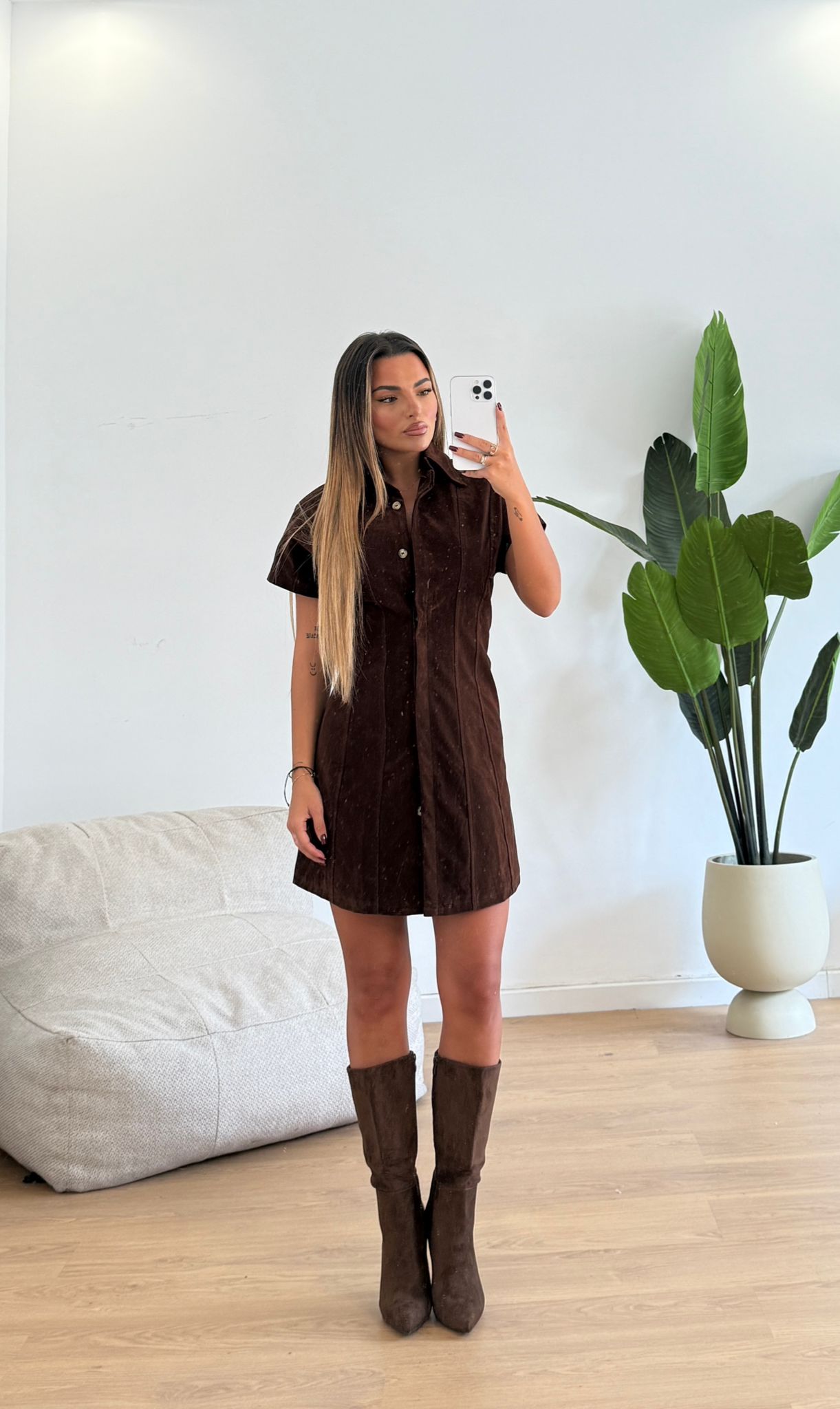 Abitino da donna tessuto camoscio e veste regolarmente la propria taglia e la modella indossa taglia S