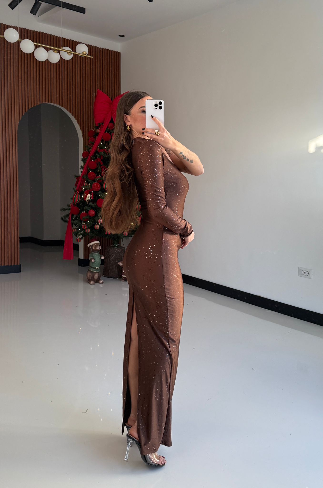 Abito da donna in lycra con spacco sul retro sul finale, tessuto brillantinato ed elasticizzato e vestirà bene fino ad una M/L