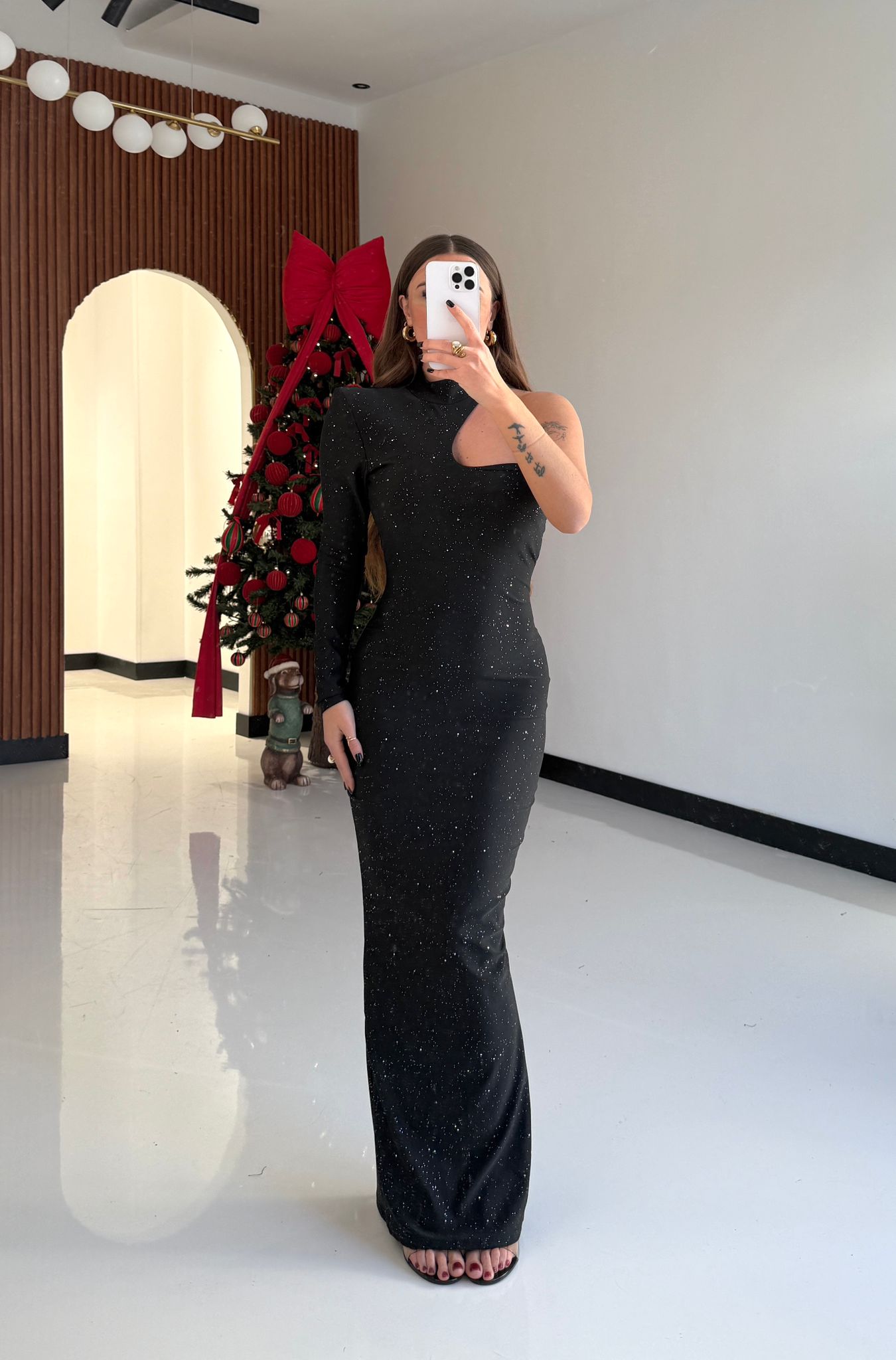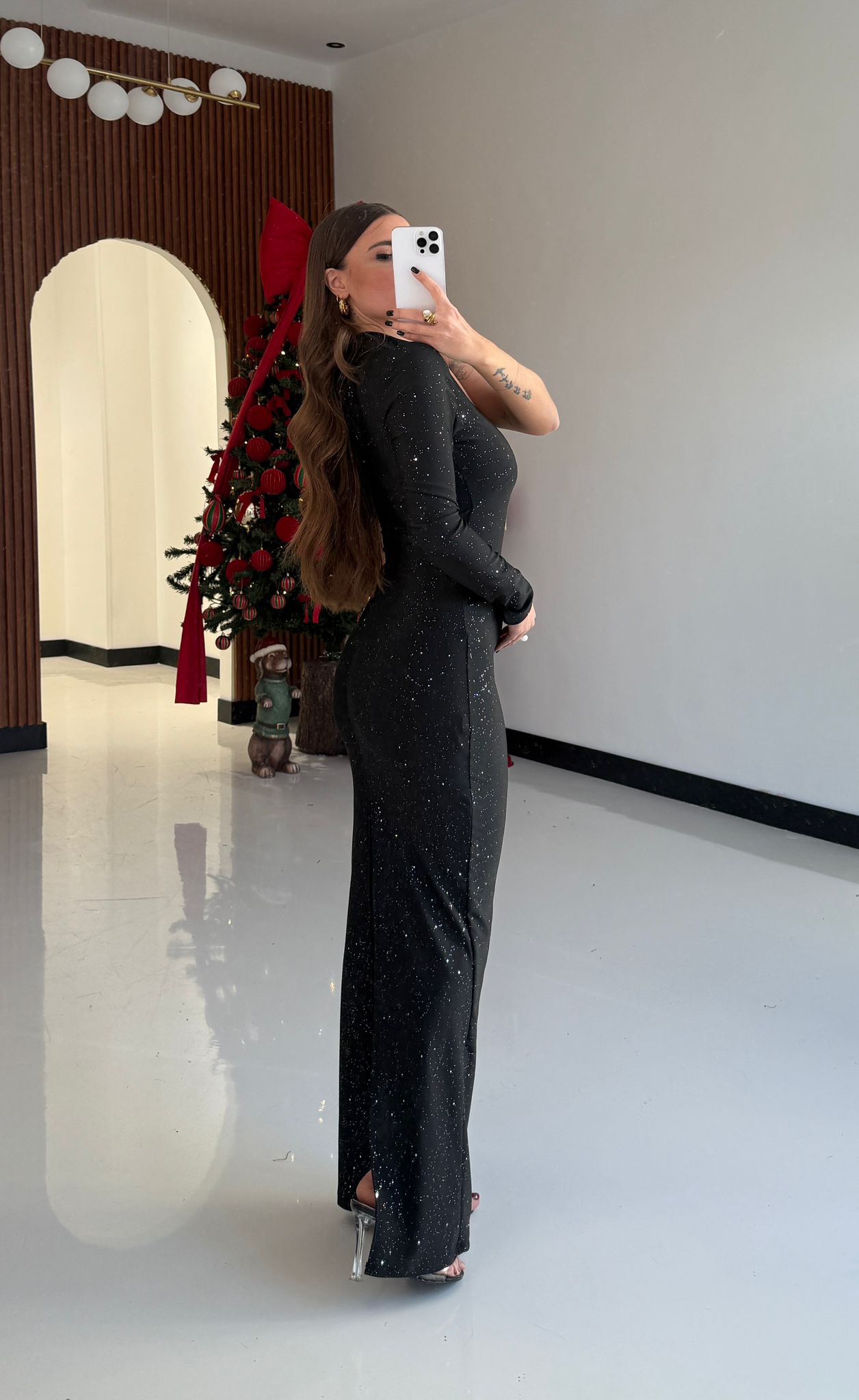 Abito da donna in lycra con spacco sul retro sul finale, tessuto brillantinato ed elasticizzato e vestirà bene fino ad una M/L