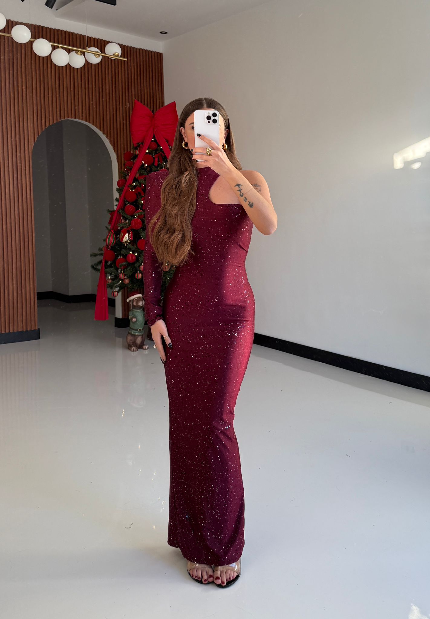 Abito da donna in lycra con spacco sul retro sul finale, tessuto brillantinato ed elasticizzato e vestirà bene fino ad una M/L
