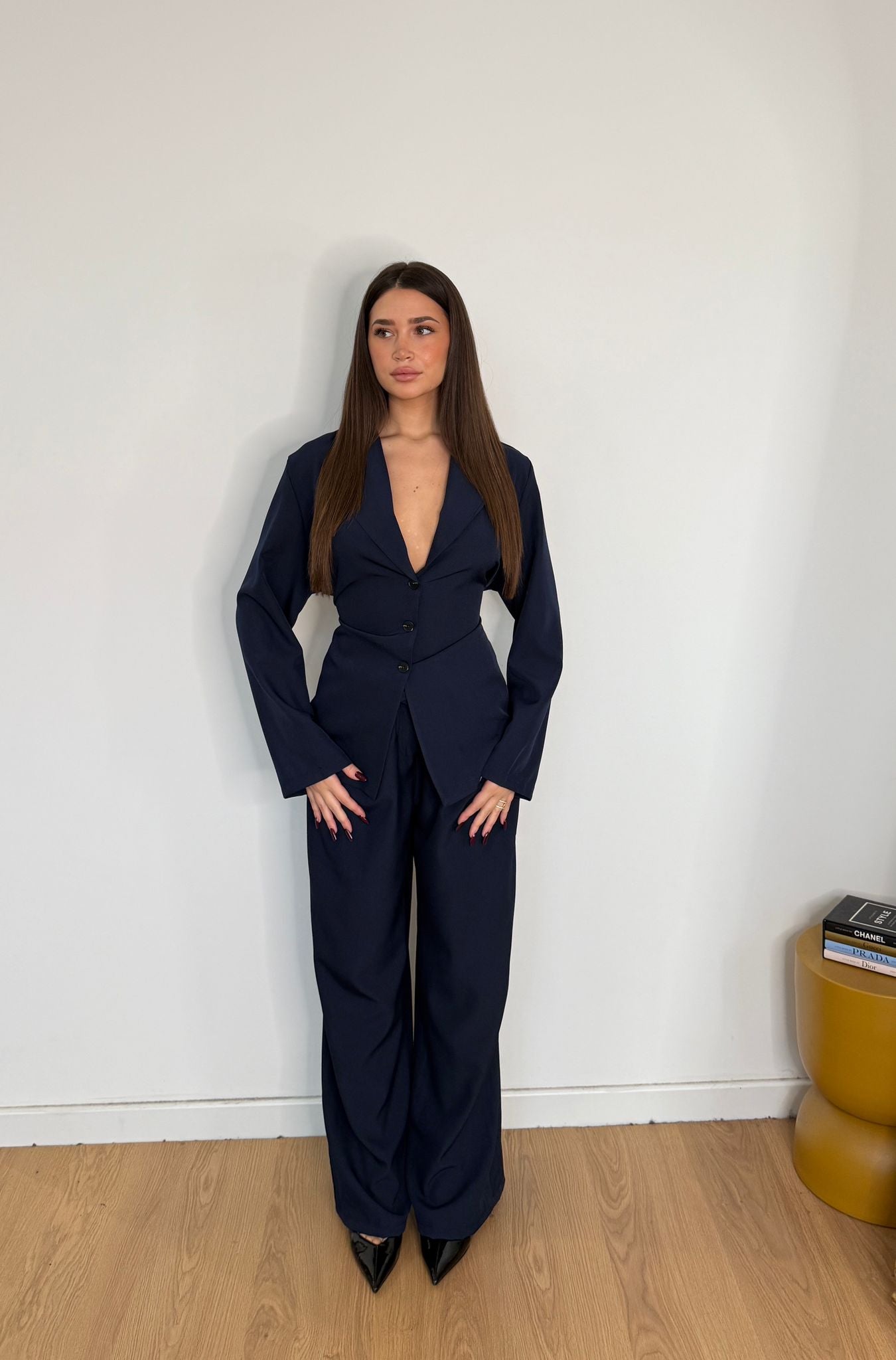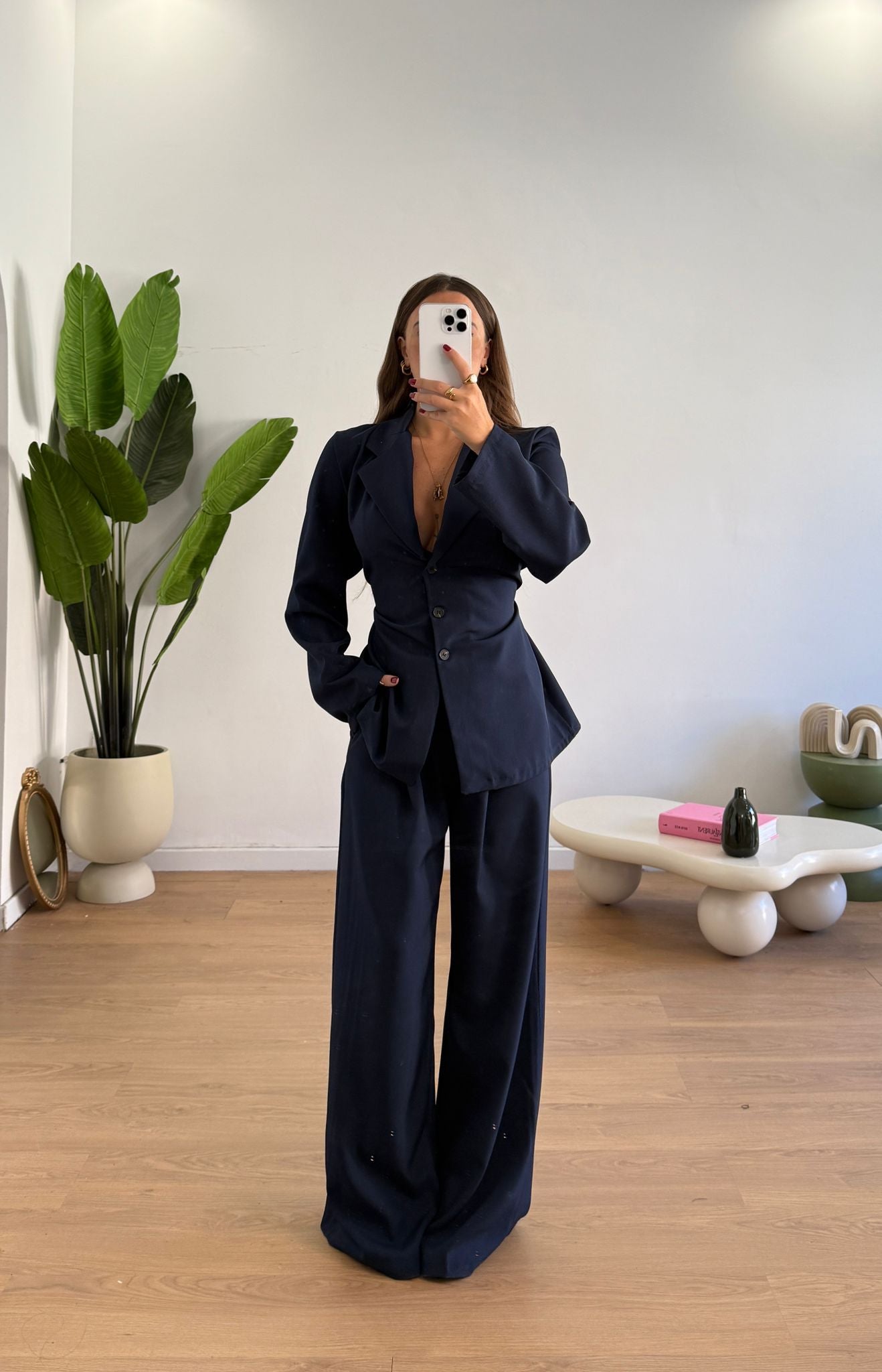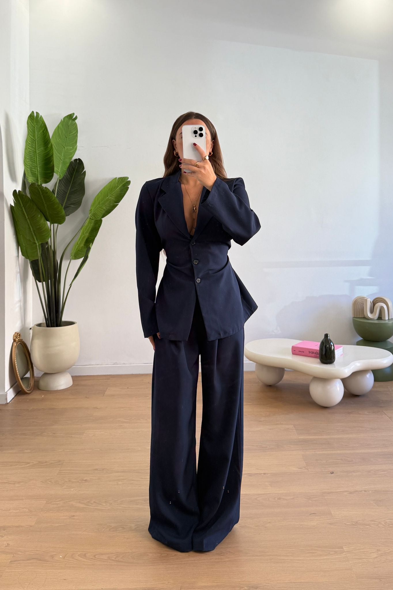 Coordinato da donna composto da giacca foderata internamente e con spalline imbottite, pantalone con elastico in vita sul retro e vestirà bene fino ad una M/L