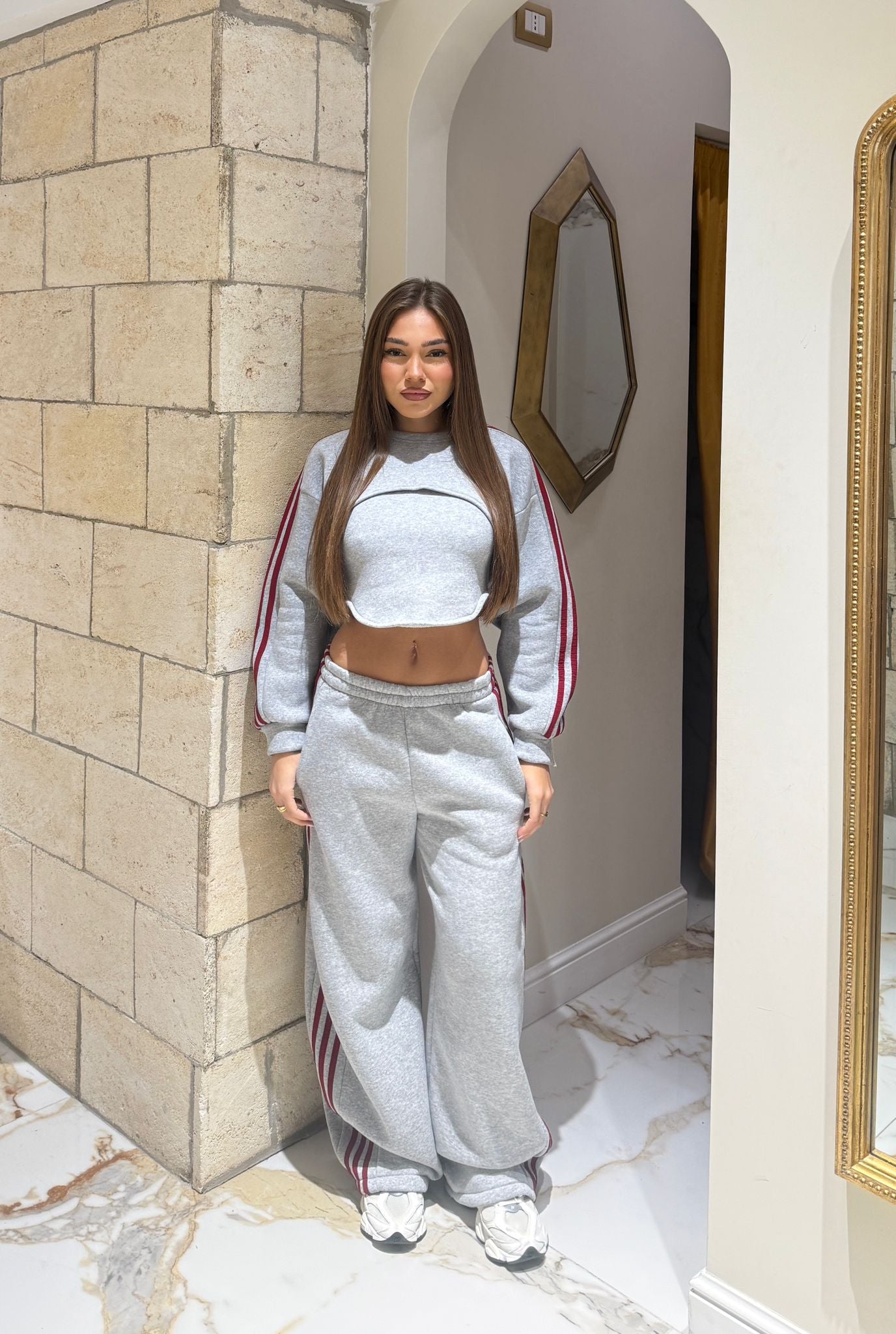 Coordinato da donna composto da felpa crop con canotta e pantalone con elastico in vita, il coordinato è felpato interamente e vestirà bene fino ad una M/L