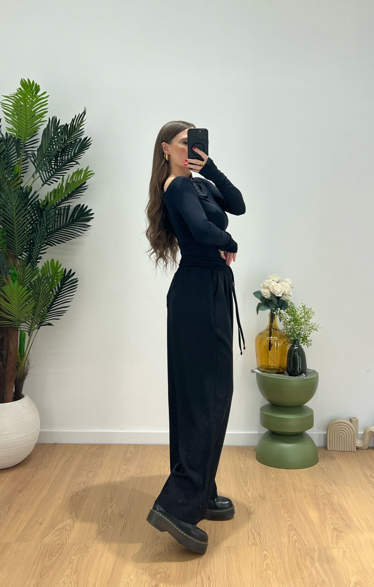 Pantalone da donna con elastico in vita e laccio regolabile, vestibilità morbida ma veste regolarmente la propria taglia e giusy indossa taglia S