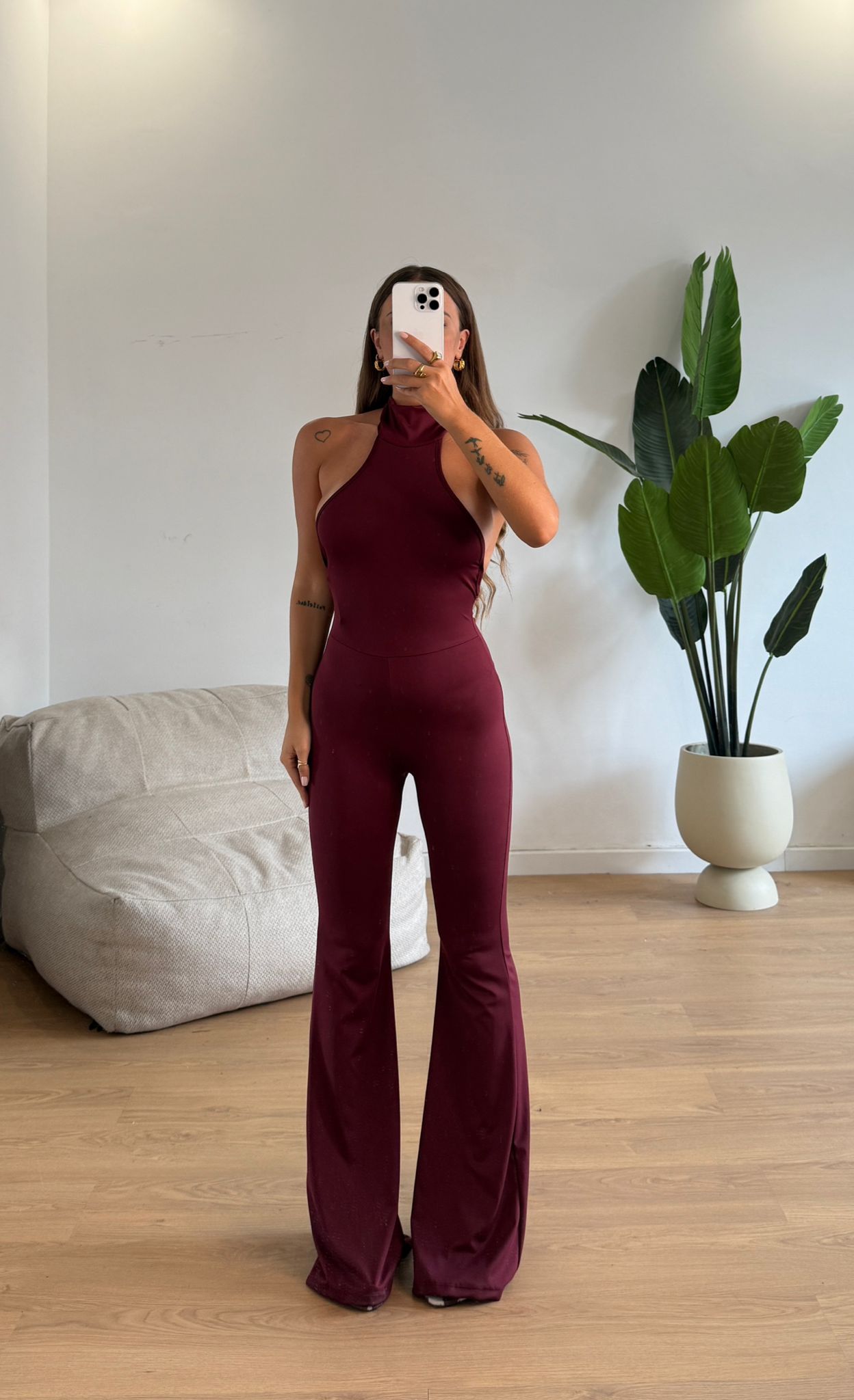 Tuta da donna in lycra a zampa con schiena scoperta, tessuto elasticizzato e vestirà bene fino ad una 42 piena
