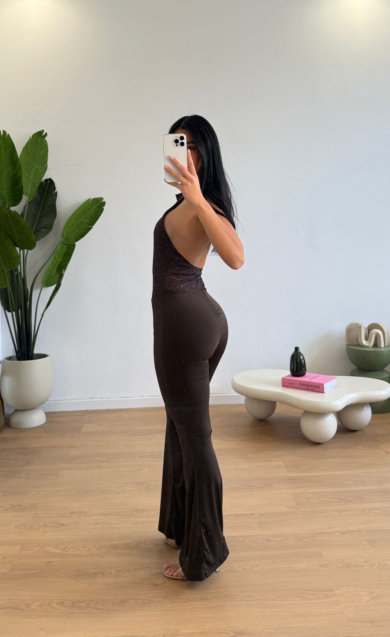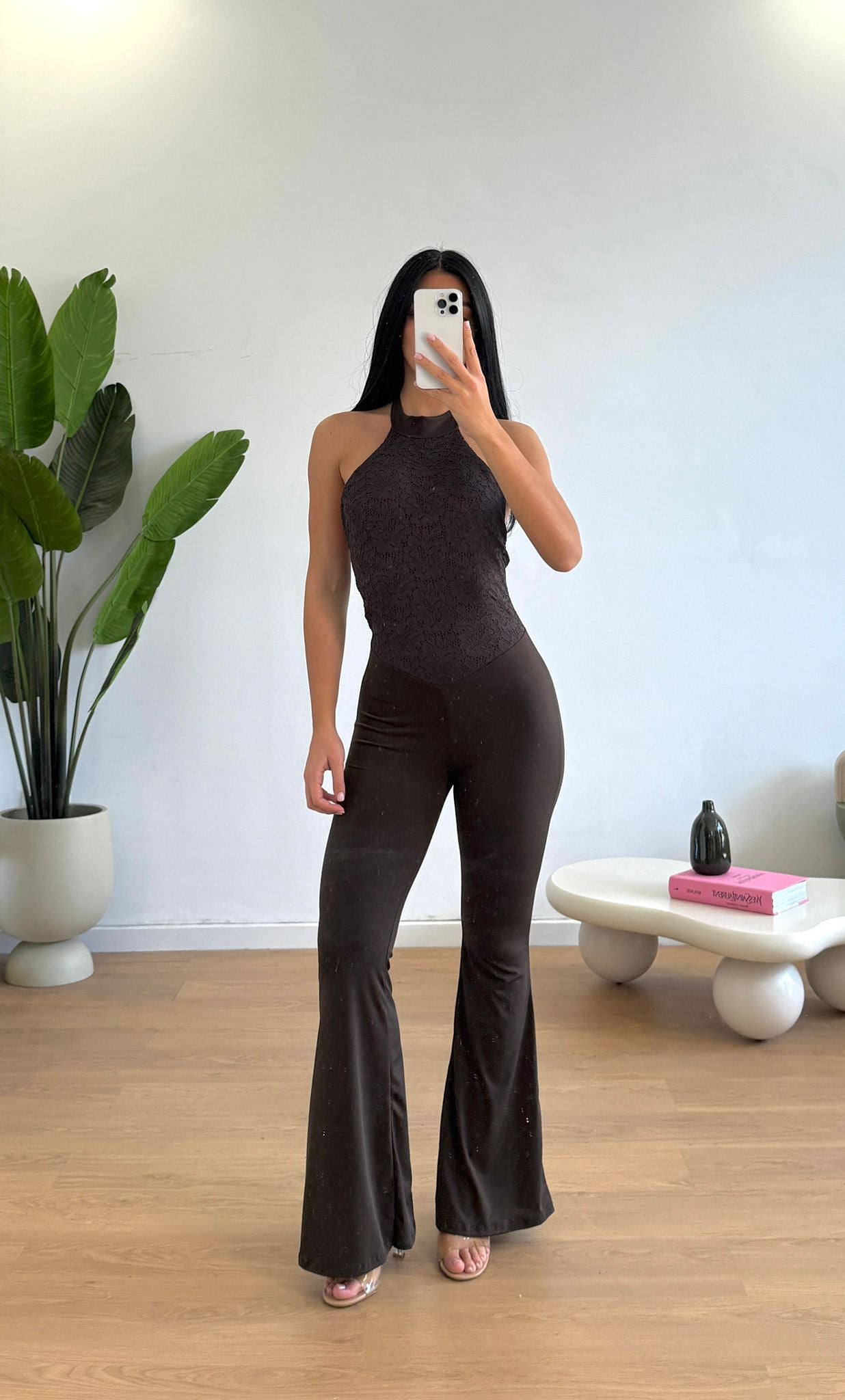 Tutone da donna a zampa con parte superiore in ricamo e scollo all’americana, tessuto elasticizzato e vestirà bene fino ad una M/L