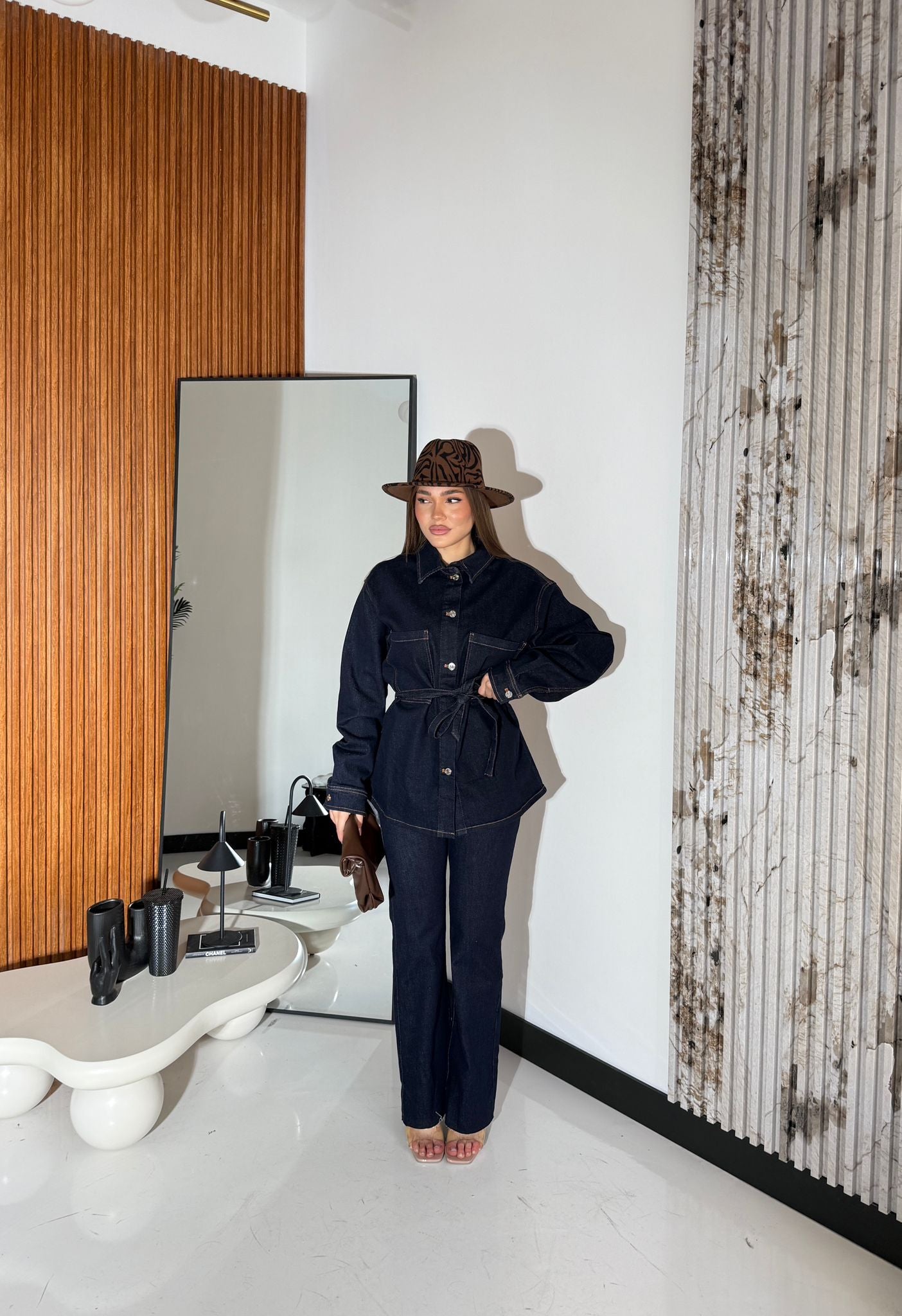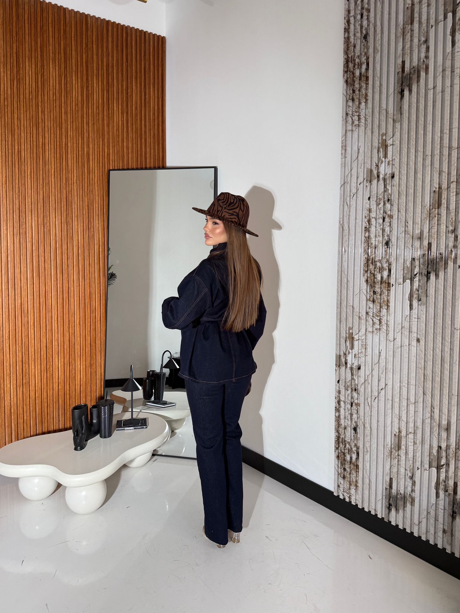 Jeans da donna denim scuro , modello wide leg con tasche sul davanti e sul retro. Tessuto elasticizzato, sfrangiato sul finale. Veste bene la propria taglia, modella indossa taglia XS ed è alta 1,65 e pesa 52/53kg.
