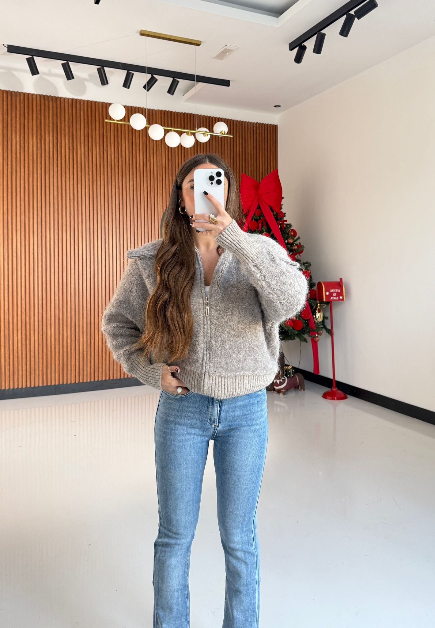 Maglione da donna in lana rasata con chiusura in zip sul davanti e vestirà bene fino ad una M/L piena