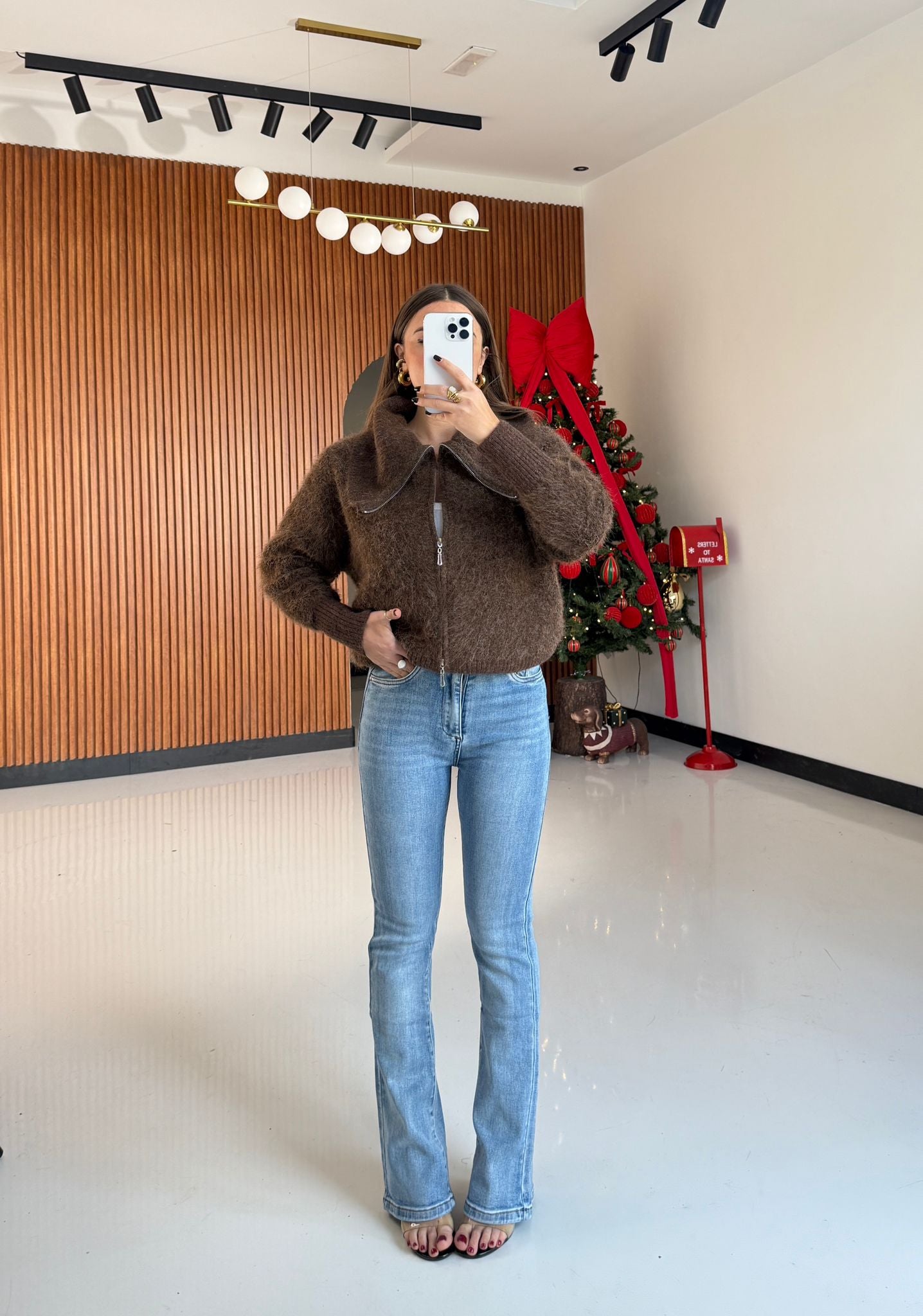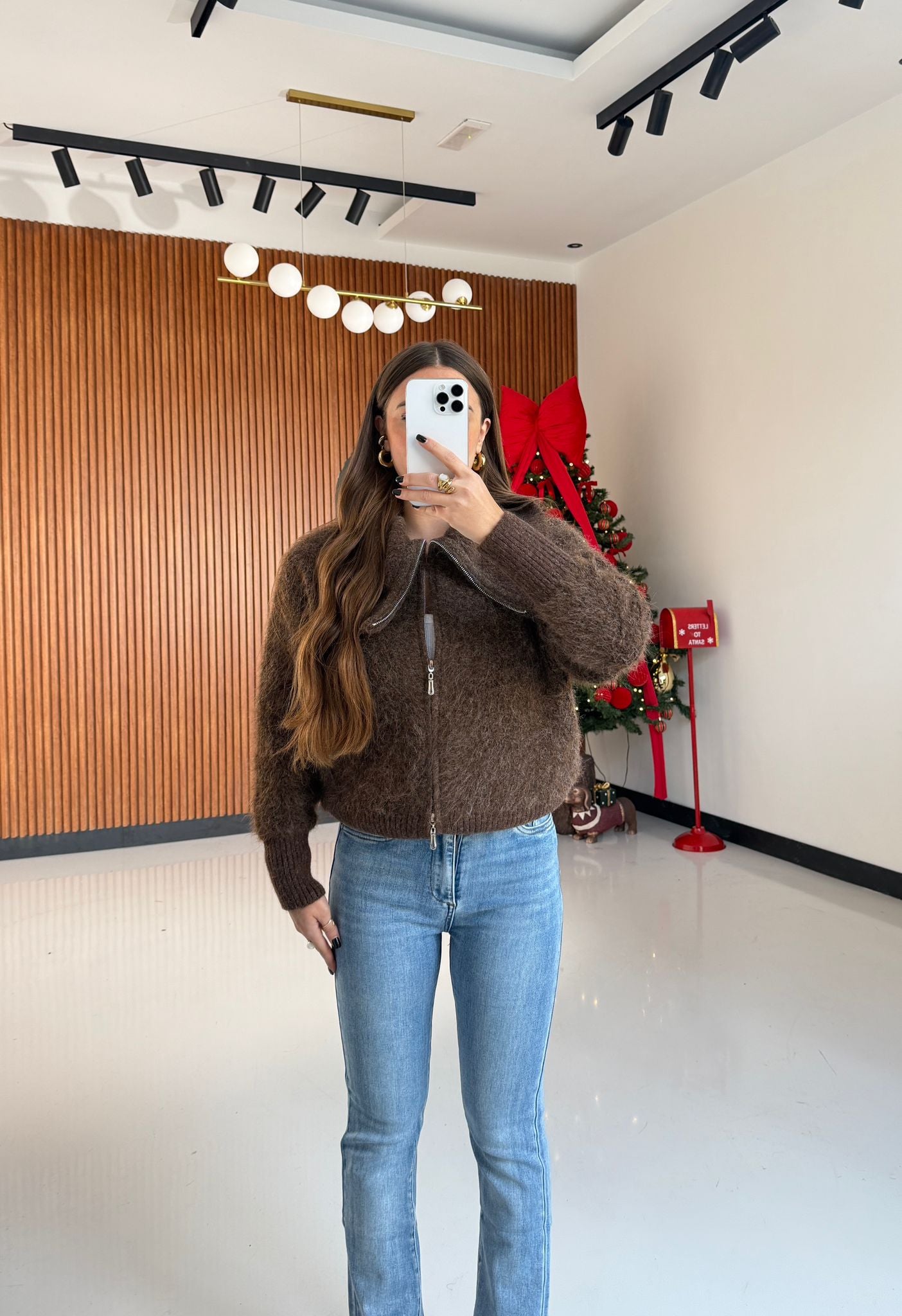 Maglione da donna in lana rasata con chiusura in zip sul davanti e vestirà bene fino ad una M/L piena