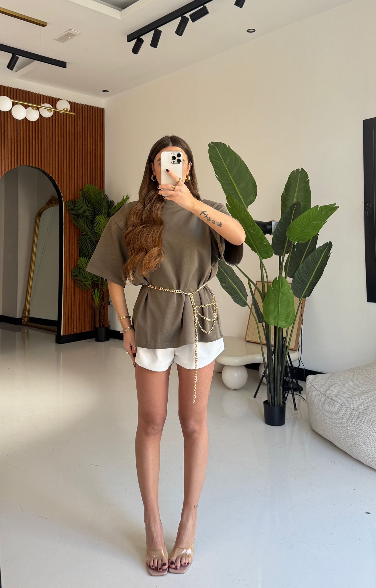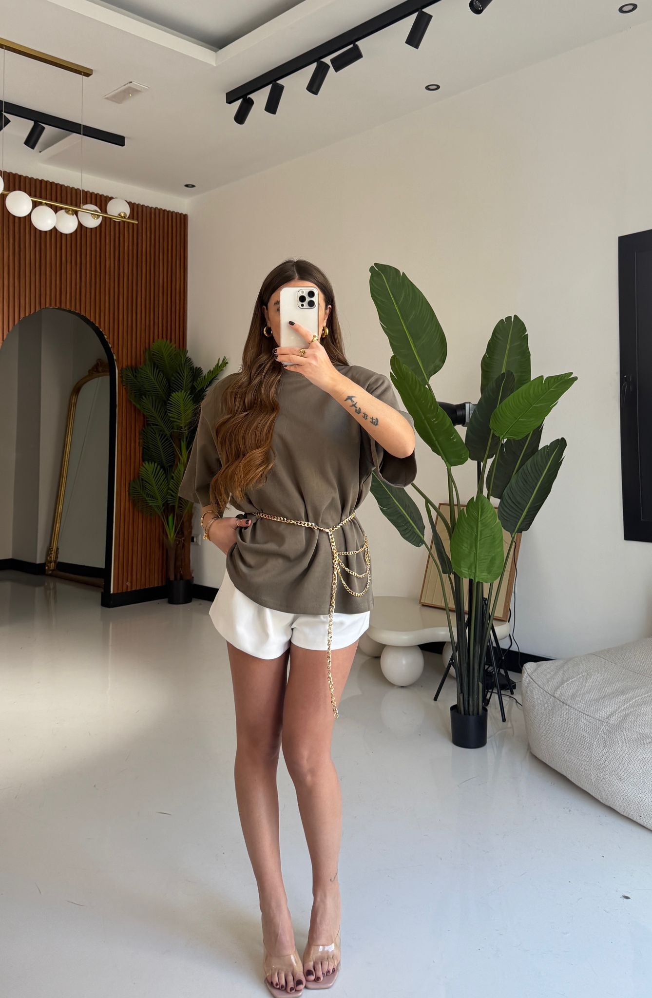 Shirt da donna con spalline, tessuto top quality in doppio cotone, vestibiàita oversize e vestirà bene fino ad una taglia M/L. La modella è alta 1,65cm e pesa 52/53kg